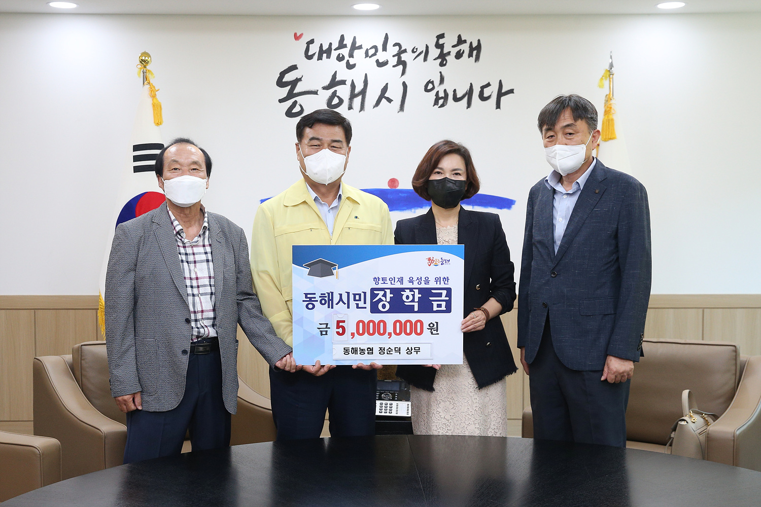 [강원사회복지신문 김종한 기자]=정순덕 동해농협 상무가 지난 8월 5일 동해시청을 방문해 향토인재 육성을 위한 동해시민장학금 500만원을 기탁했다.