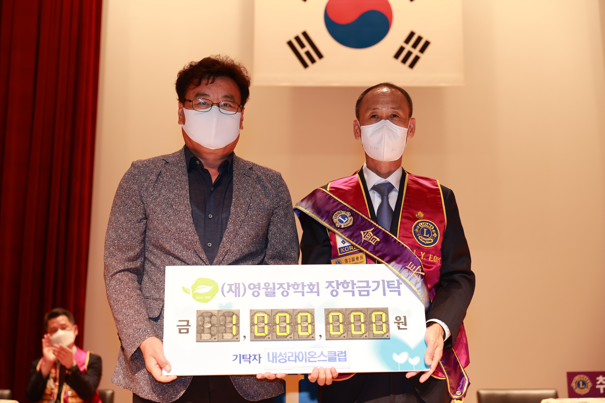 [강원사회복지신문 이정환 기자]=영월군 내성라이온스클럽(회장 엄주연)은 지난 7월 19일 영월지역 인재육성을 위해 장학금으로 쓰이길 바란다며 1백만원을 재단법인 영월장학회(이사장 최명서)에 기탁하였다.