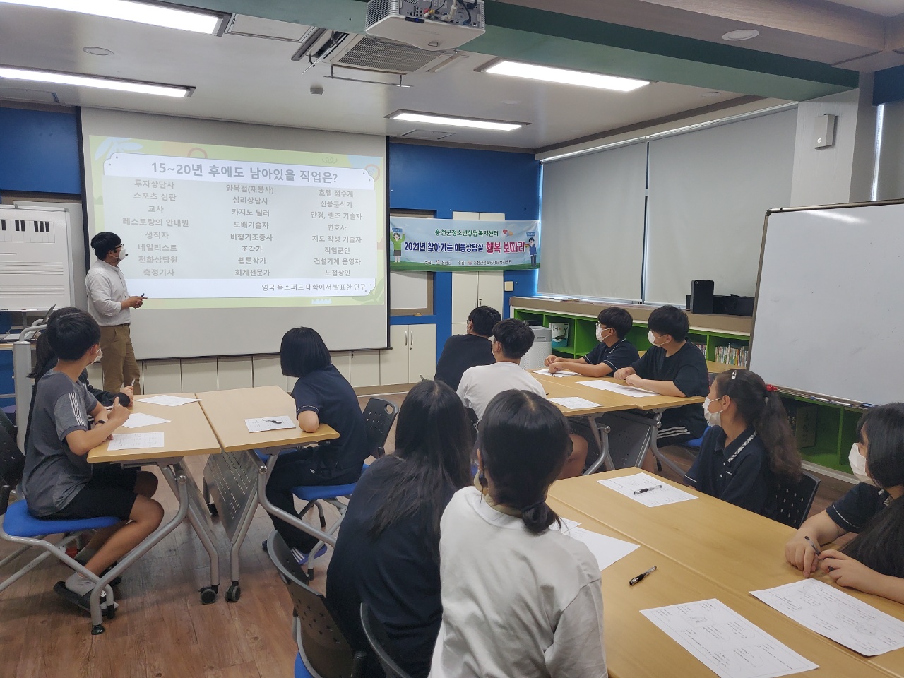 [강원사회복지신문 홍기한 기자]=홍천군청소년상담복지센터(센터장: 허일)는 지난 7월 20일(화) 오후 1시부터 3시까지 내촌중학교 전 학년(11명)을 대상으로 면 단위 찾아가는 이동상담실 행복 보따리 '신나는 진로여행'을 진행했다. 이번 프로그램은 2시간 동안 홀랜드검사 및 자기유형 탐색을 했다. 홀랜드검사에 대한 이해...