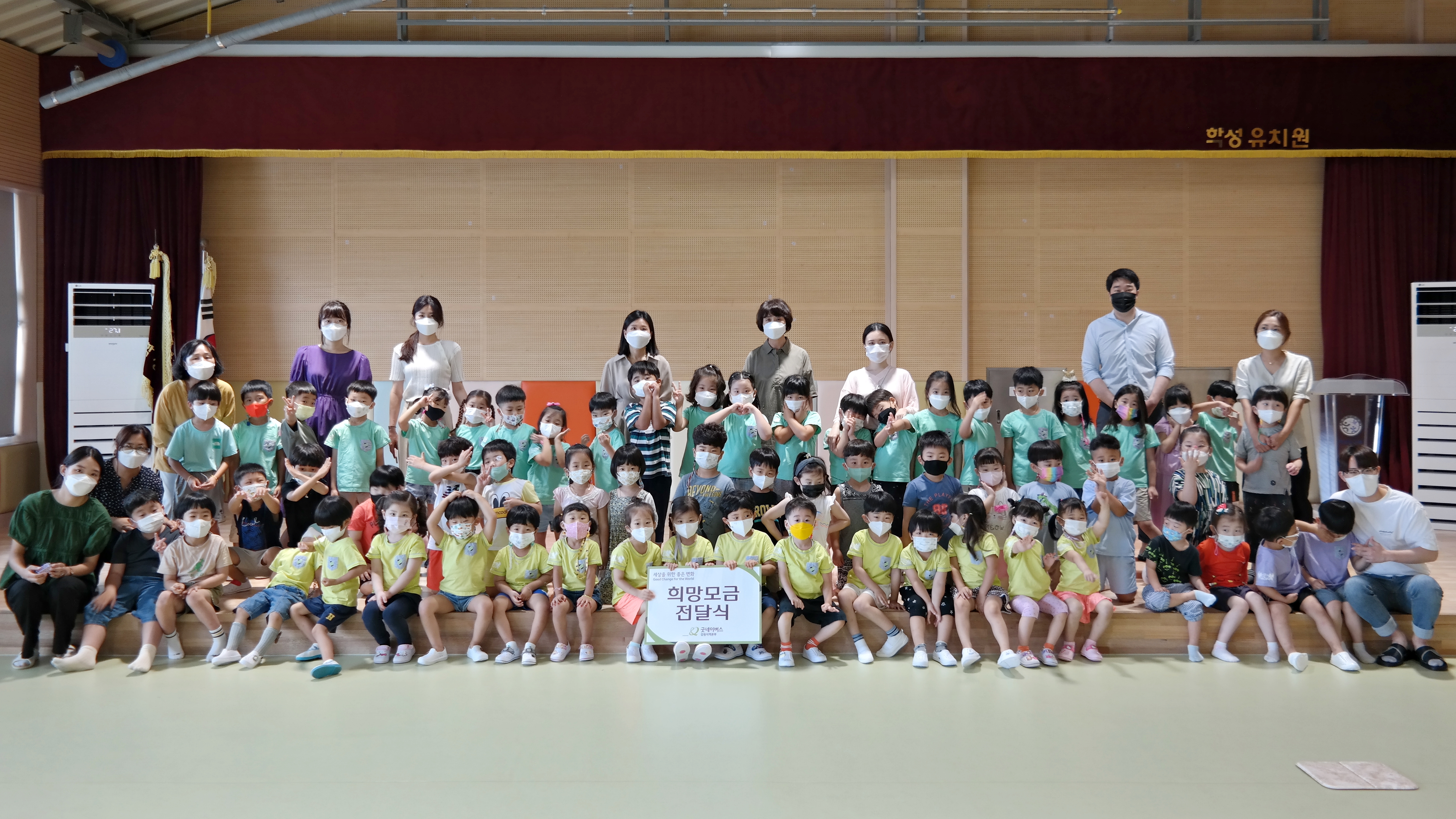 [강원사회복지신문 서은진 기자]=원주 학성유치원은 바자회를 통해 조성된 기금을 굿네이버스 강원지역본부(본부장 박미경)에 기탁했다. 이번 전달식을 통해 전달된 기금은 지역 내 소외계층을 위해 사용될 예정이다. <사진 제공 : 굿네이버스 강원지역본부>