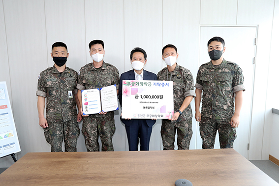 [강원사회복지신문 홍기한 기자]=육군 3기갑여단 불곰장학회(회장 박광호)는 지난 6월 10일 홍천군청을 방문, 허필홍 홍천군수에게 무궁화장학금 100만원을 전달했다.