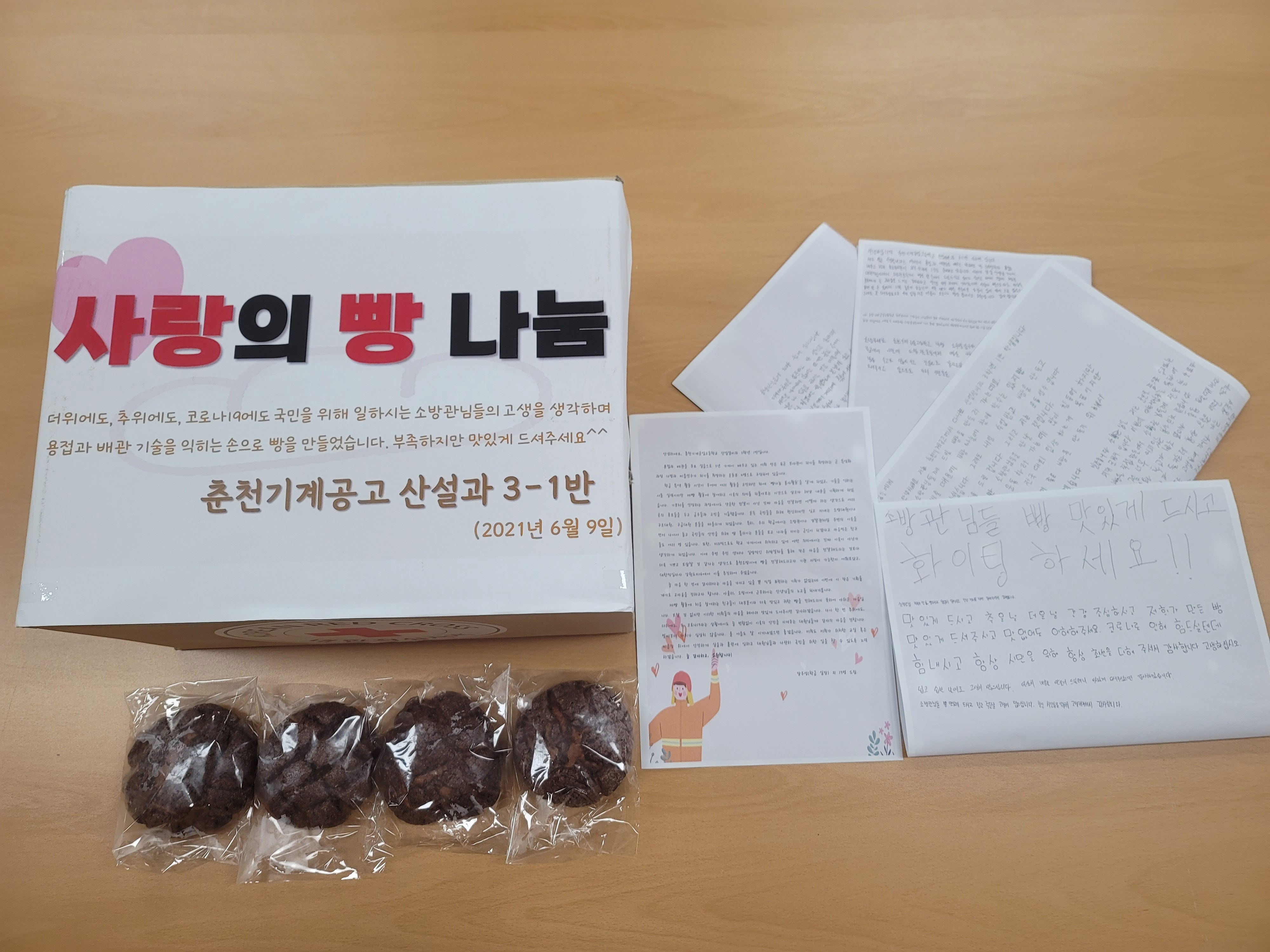 [강원사회복지신문 홍기한 기자]=춘천소방서(서장 정종호)는 지난 6월 9일(수) 대한적십자사 강원도지사에서 실시하는 지역사회 시민참여형 봉사프로그램의 일환으로 춘천기계공고 학생들이 제빵나눔 봉사활동에 참여하여 정성껏 만든 빵을 전달받았다. 춘천기계공고 산업설비과 3학년 학생들은 학급 특색 활동시간을 활용하...