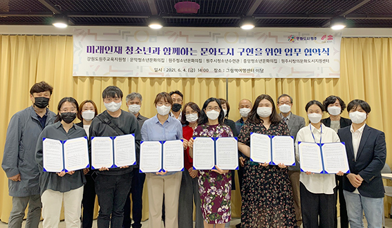 원주시 창의문화도시지원센터, 원주교육지원청 등 6개 기관 참여 [강원사회복지신문 서은진 기자]=원주시 창의문화도시지원센터(센터장 제현수)는 지난 6월 4일 강원도원주교육지원청, 문막청소년문화의집, 원주청소년문화의집, 원주시청소년수련관, 중앙청소년문화의집과 '미래인재 청소년과 함께하는 문화도시 구현'을 위한...