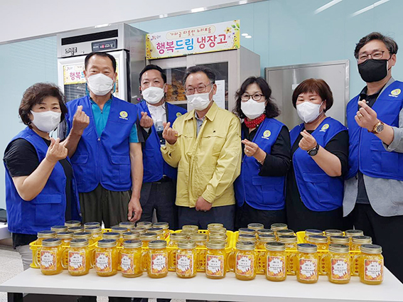 [강원사회복지신문 김종한 기자]=바르게살기운동 부곡동위원회(위원장 최정용)는 '청소년 사회공헌 프로젝트'일환으로 묵호중·고등학교 학생봉사단과 바르게살기운동 위원들이 함께 직접 만든 오렌지청 50개를 동해시 부곡동행정복지센터에 전달했다. 비타민이 가득한 수제 오렌지청은 부곡동행정복지센터 내 행복드림냉장고...