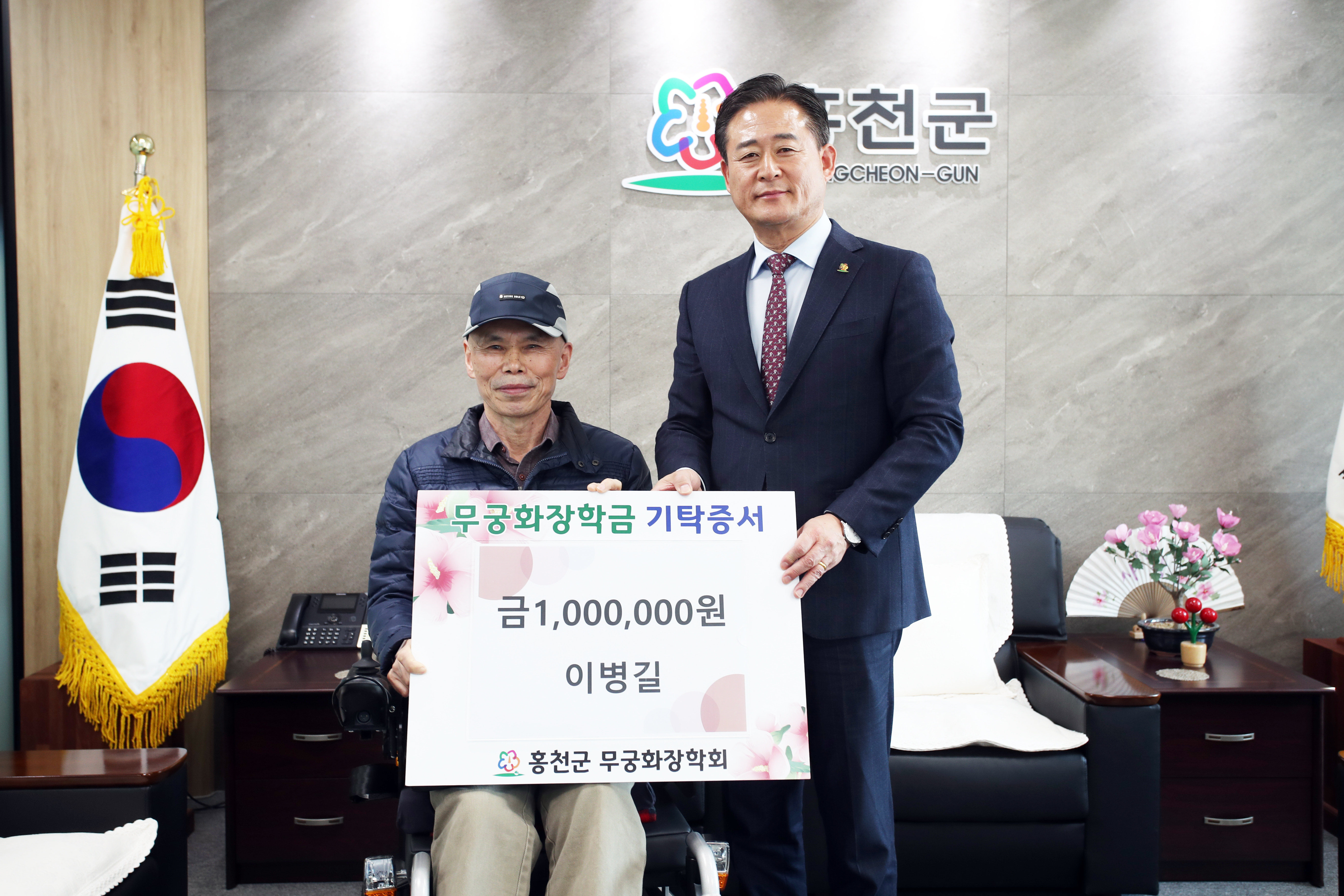 지체장애인협회 홍천군지회 운영위원인 이병길 후원자가 지난 3월 21일 홍천군청을 방문해 무궁화장학금 100만원을 기탁했다.