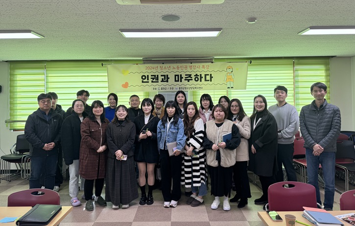 청소년 노동인권 사업 명강사 특강 ‘인권과 마주하다’ 권리교육 진행 홍천군청소년상담복지센터(센터장: 허일)는 지난 3월 15일 홍천군청소년상담복지센터에서 홍천 관내 청소년 실무자 24명을 대상으로 명강사 특강 ‘인권과 마주하다’ 권리교육을 진행했다. 이번 교육은 ‘청소년 정신건강’을 주제로 청소년 이슈에 대...