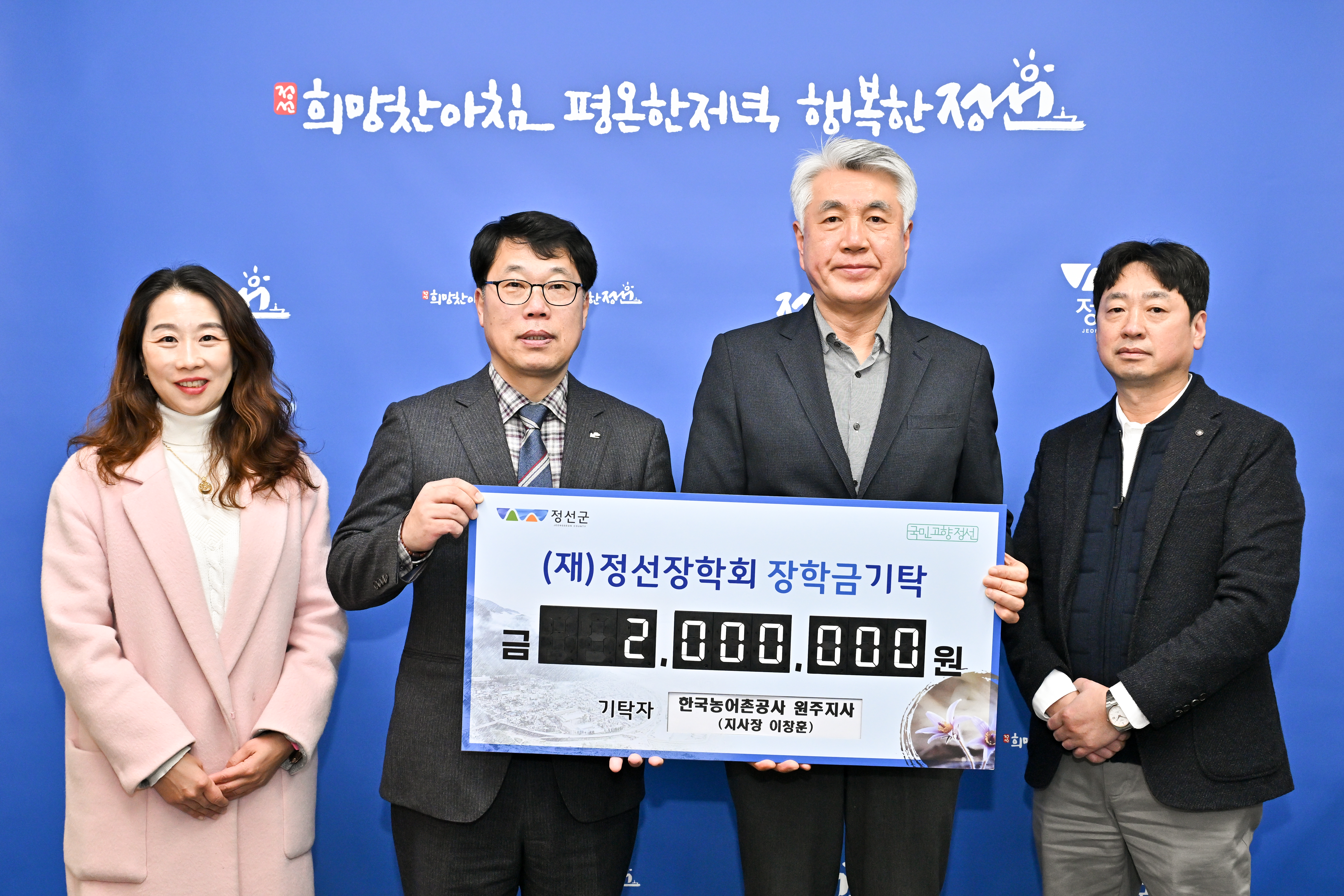 한국농어촌공사 원주지사(지사장 이장훈)는 지난 2월 28일 (재)정선장학회에 장학금 200만원을 기탁했다.