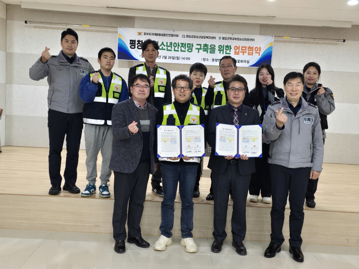 평창군청소년상담복지센터·평창군학교밖청소년지원센터(센터장 박금성)와 평창경찰서 중부지구대 봉평생활안전협의회(회장 이천기)는 지난 2월 26일 14시, 봉평면사무소 메밀꽃회의실에서 청소년 안전망 구축을 위한 업무협약을 맺었다. 생활안전협의회는 주민 참여형으로 공동체 치안을 활성화하기 위해 조직된 단체로, 중...