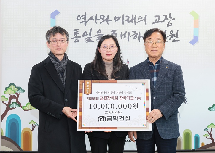(합)금학건설(대표 유혜진)은 2월 26일 오후 5시 철원장학회 장학기금으로 1,000만원을 기탁했다.
