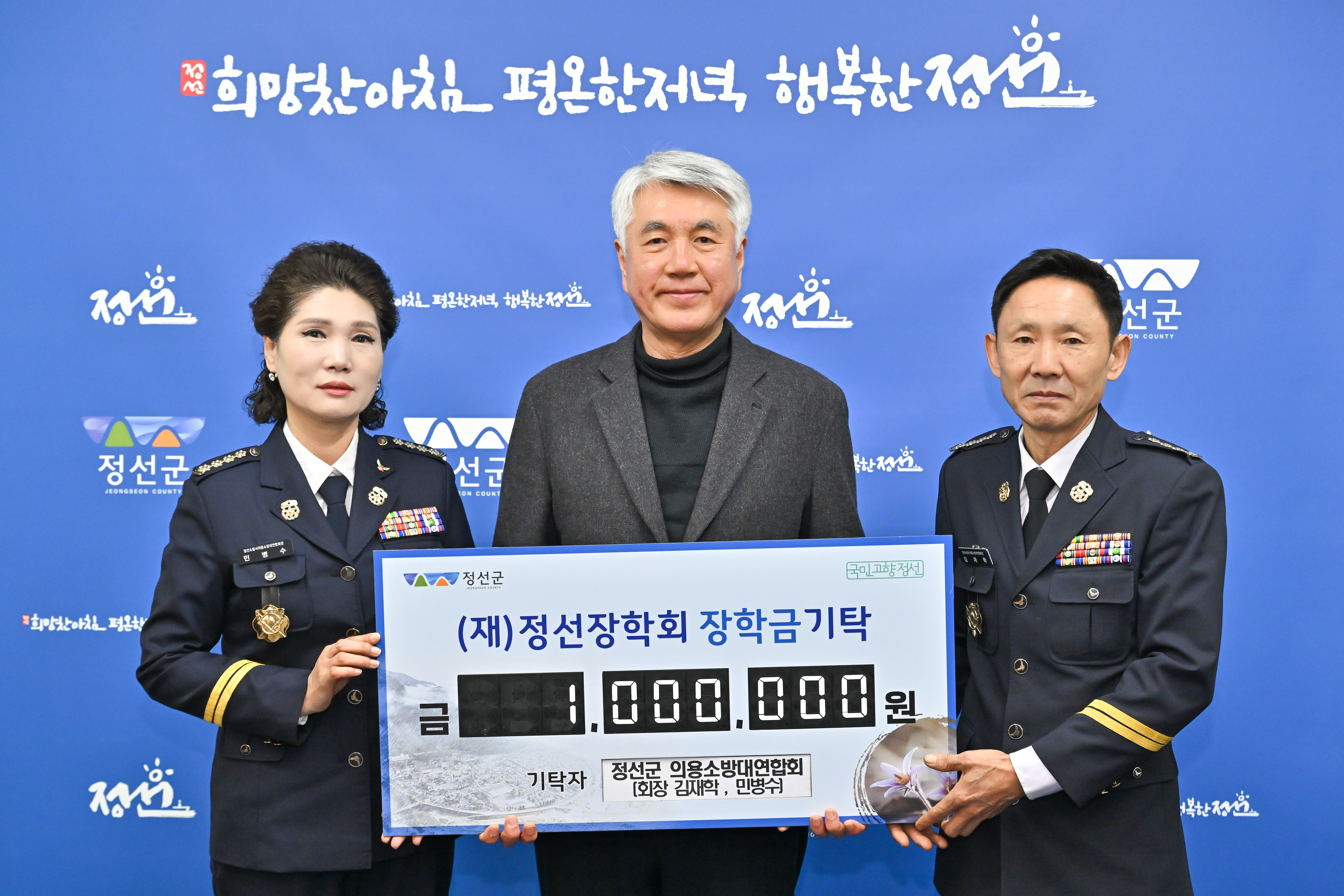 정선군 의용소방대연합회(회장 김재학, 민병수)는 2월 27일 정선군청에서 최승준(정선군수) (재)정선장학회 이사장에게 지역인재 육성을 위한 장학금 100만 원을 기탁했다.