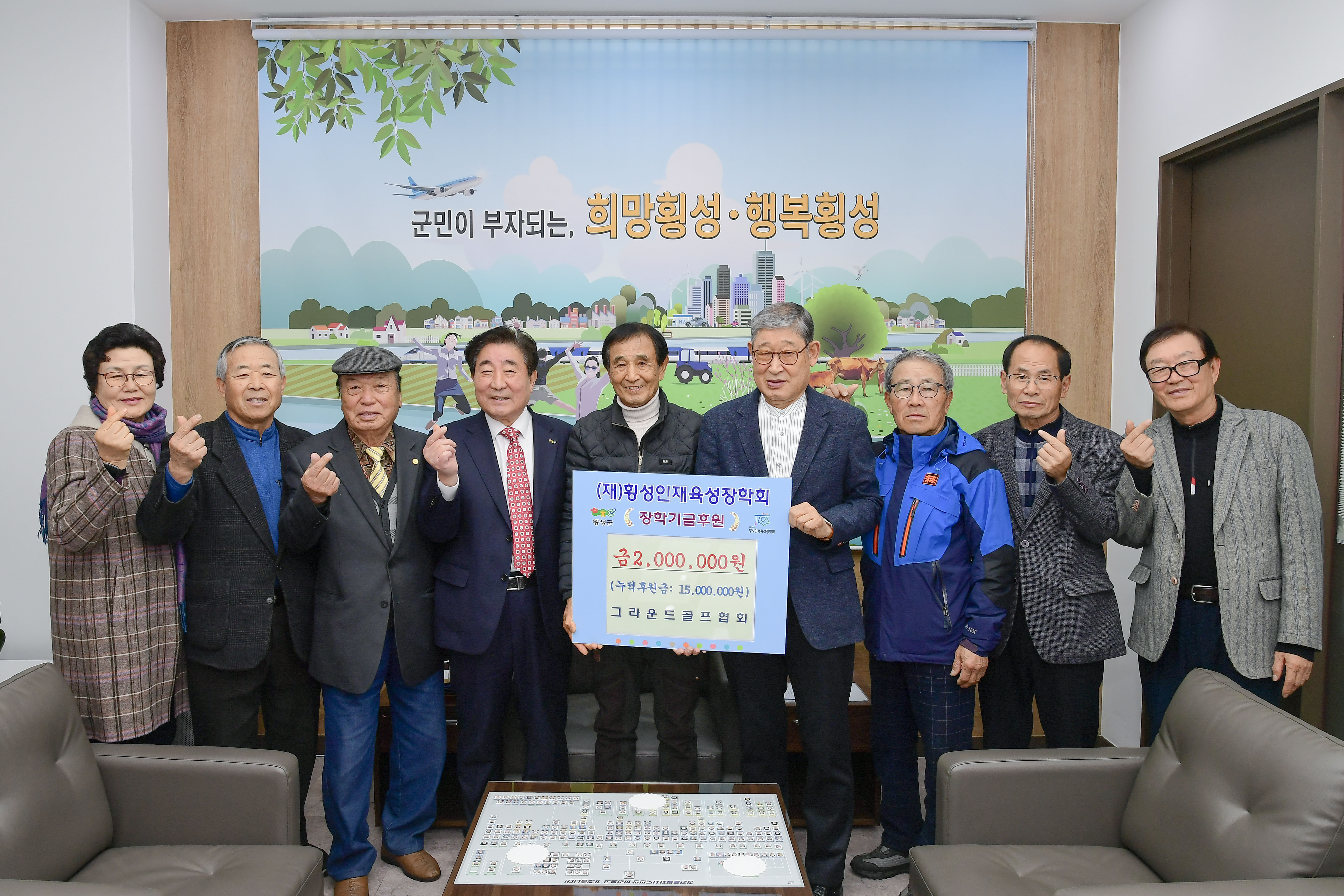 그라운드골프협회(회장 최경근) 회원들이 지난 2월 15일 십시일반으로 모은 성금 200만 원을 횡성인재육성장학회(이사장 조창진)에 전달했다.