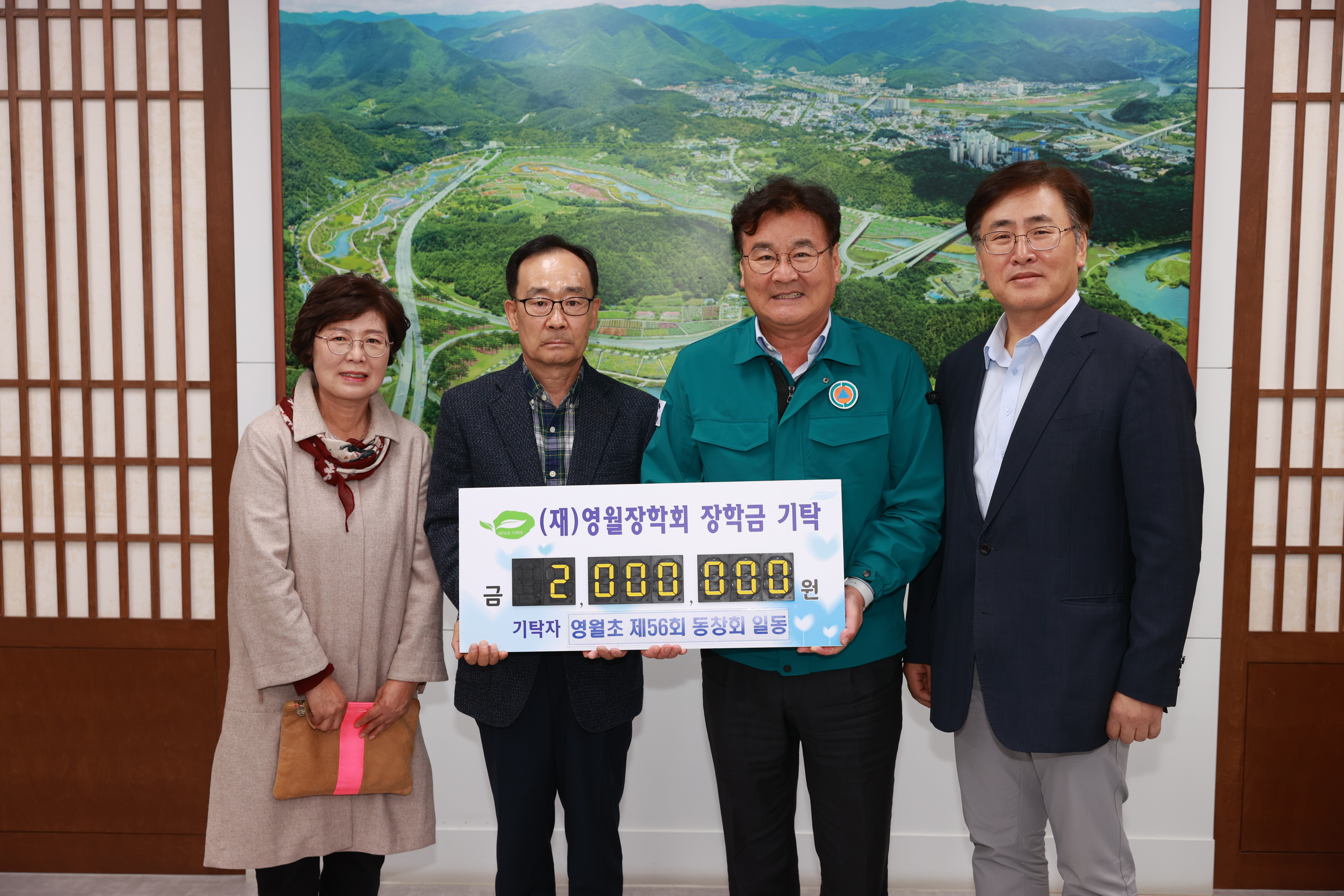 영월초등학교 제56회 동창회는 지난 10월 20일 영월지역 인재육성을 위해 장학금으로 쓰이길 바란다며 2백만원을 재단법인 영월장학회(이사장 최명서)에 기탁하였다.