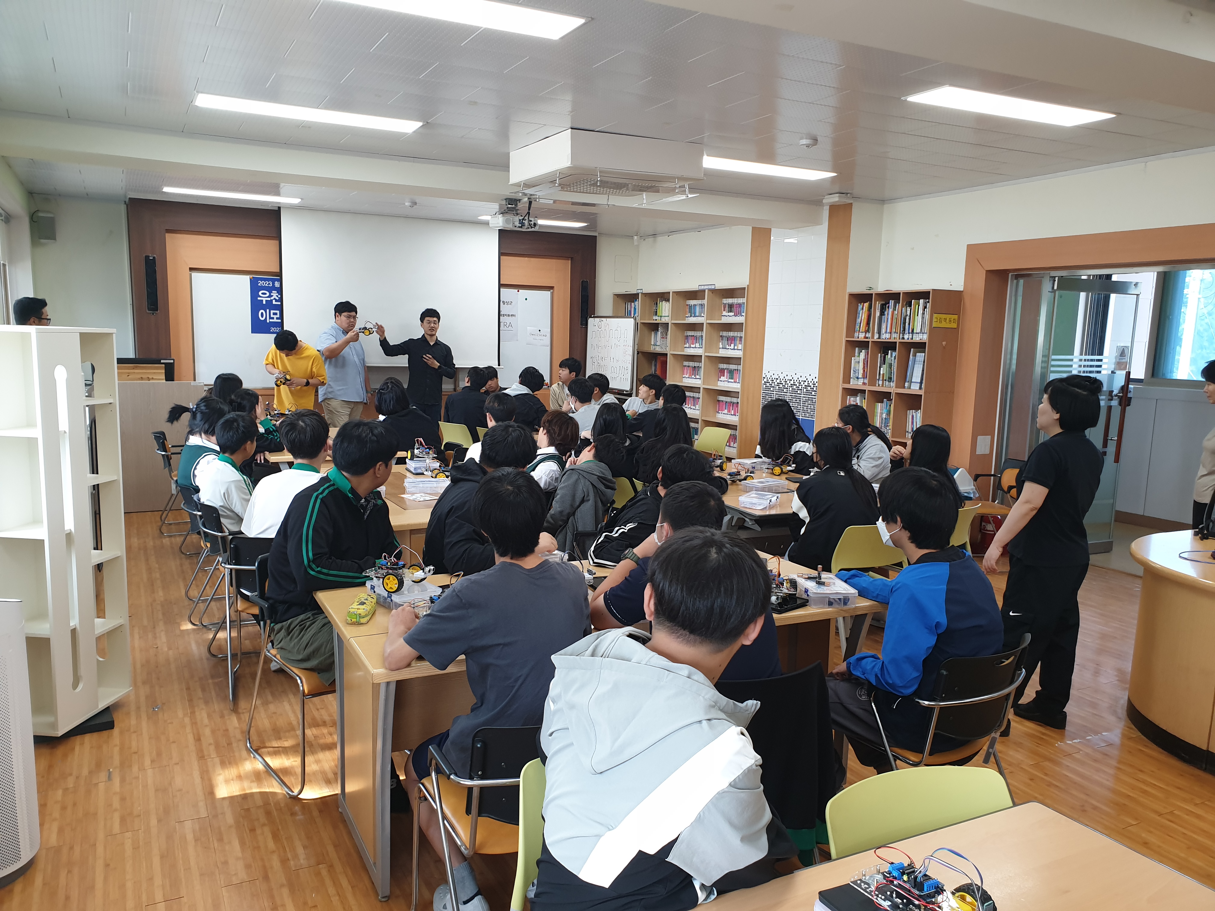 [강원사회복지신문 홍기한 기자]=횡성군 우천면에서 지난 10월 11일 도시재생 활성화계획 추진을 목적으로 진행한 주민협의체 지원사업의 일환으로 우천중학교 재학생에게 코딩과 이모빌리티 제작 및 안전 교육을 추진했다고 밝혔다. 교육의 내용으로는 이모빌리티(전기자동차) 역사, 특성, 이모빌리티 구성 및 조립, 이모빌...