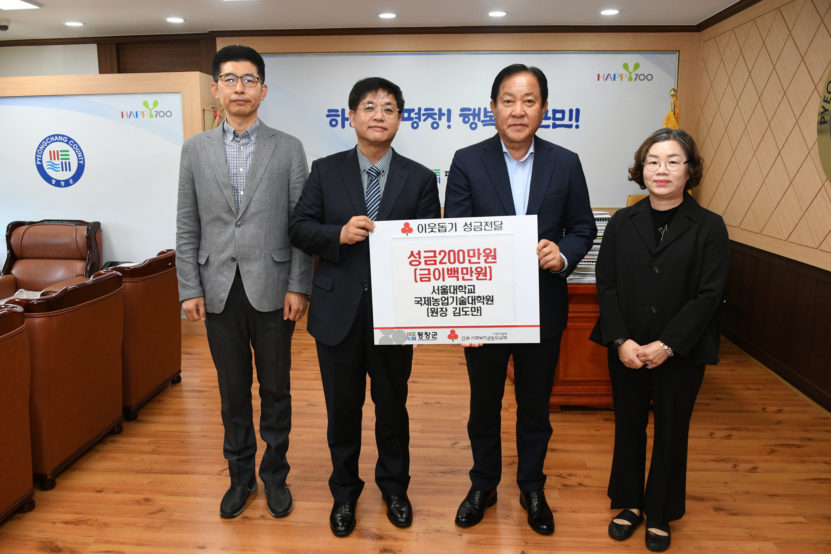 [강원사회복지신문 최재석 기자]=서울대학교 국제농업기술대학원(대학원장 김도만)은 지난 9월 25일 드림스타트 아동을 위한 성금 200만원을 평창군에 기탁하였다.