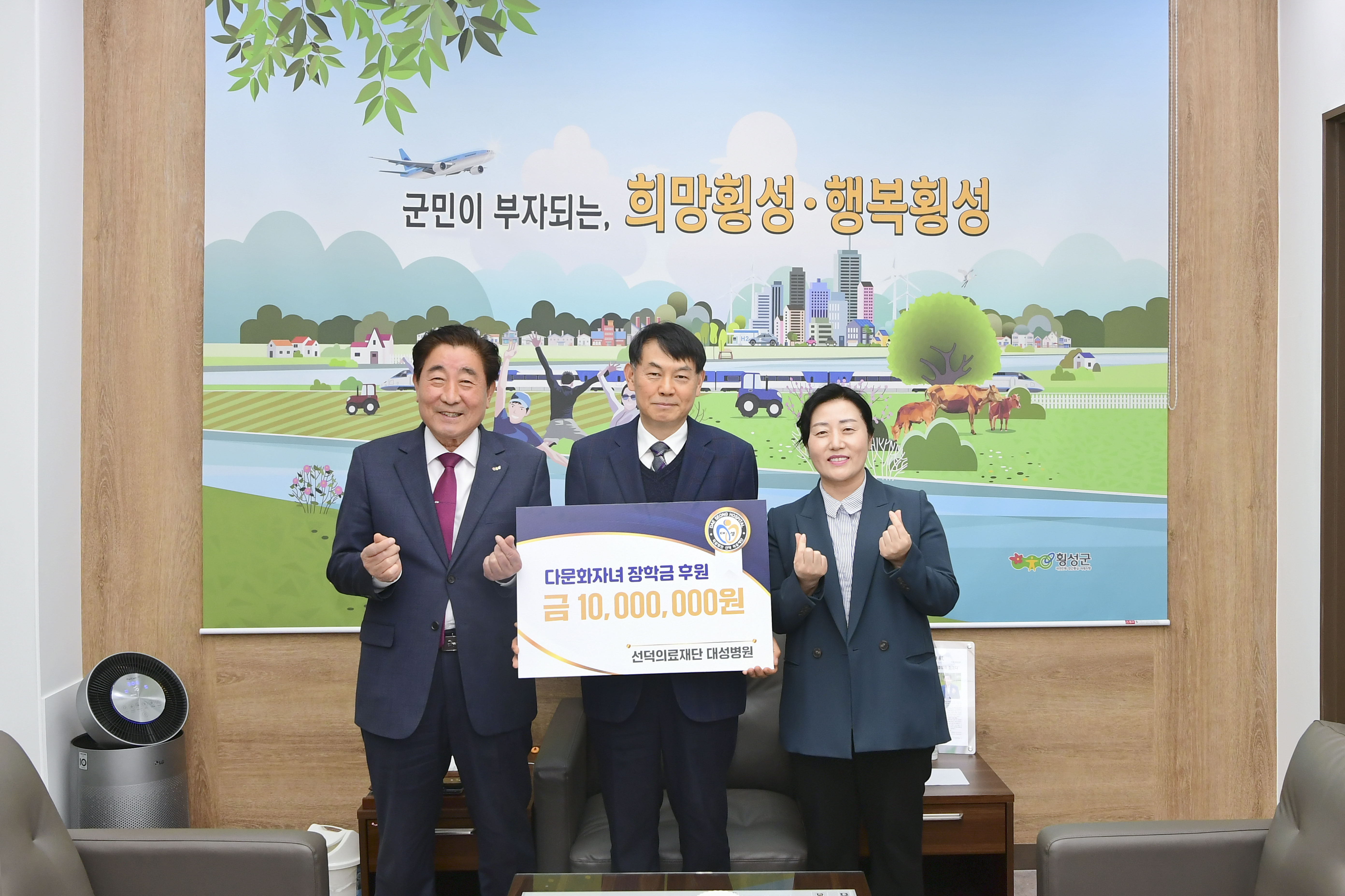 [강원사회복지신문 홍기한 기자]=횡성대성병원(대표 신형철)은 지난 5월 3일 17시 군수집무실을 방문하여 다문화가족 자녀 장학금 1,000만원을 기탁하였다. 이날 전달식에는 김명기 횡성군수와 신형철 횡성대성병원 대표, 전명희 횡성군가족센터장 외 1명이 참석하였다. 기탁된 장학금은 관내 다문화가족 자녀 10명에게 쓰여...