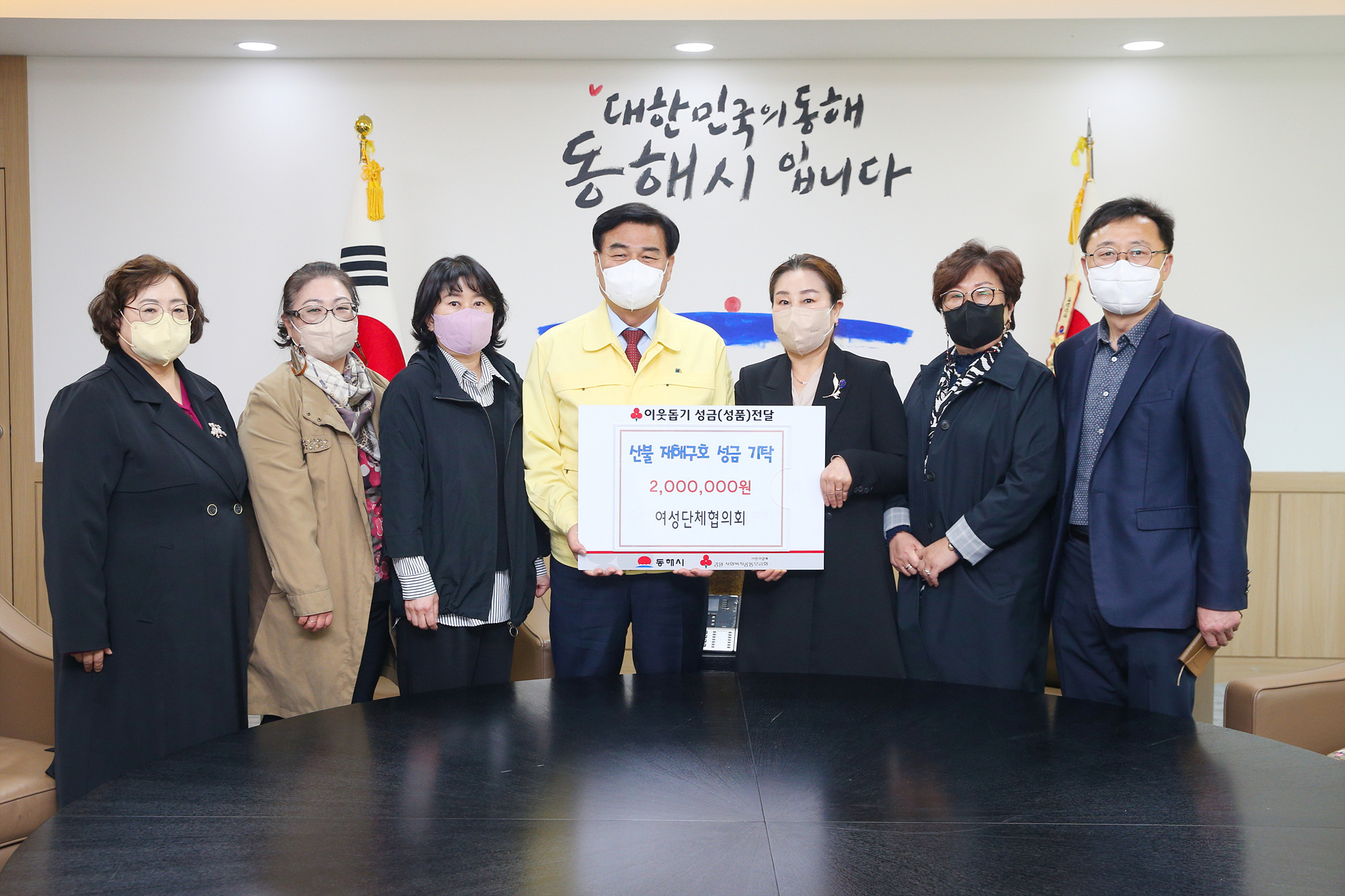 [강원사회복지신문 김종한 기자]=동해여성단체협의회에서 지난 4월 5일 동해시청을 방문해 산불피해 주민들을 위해 써 달라며 200만원의 성금을 전달했다.