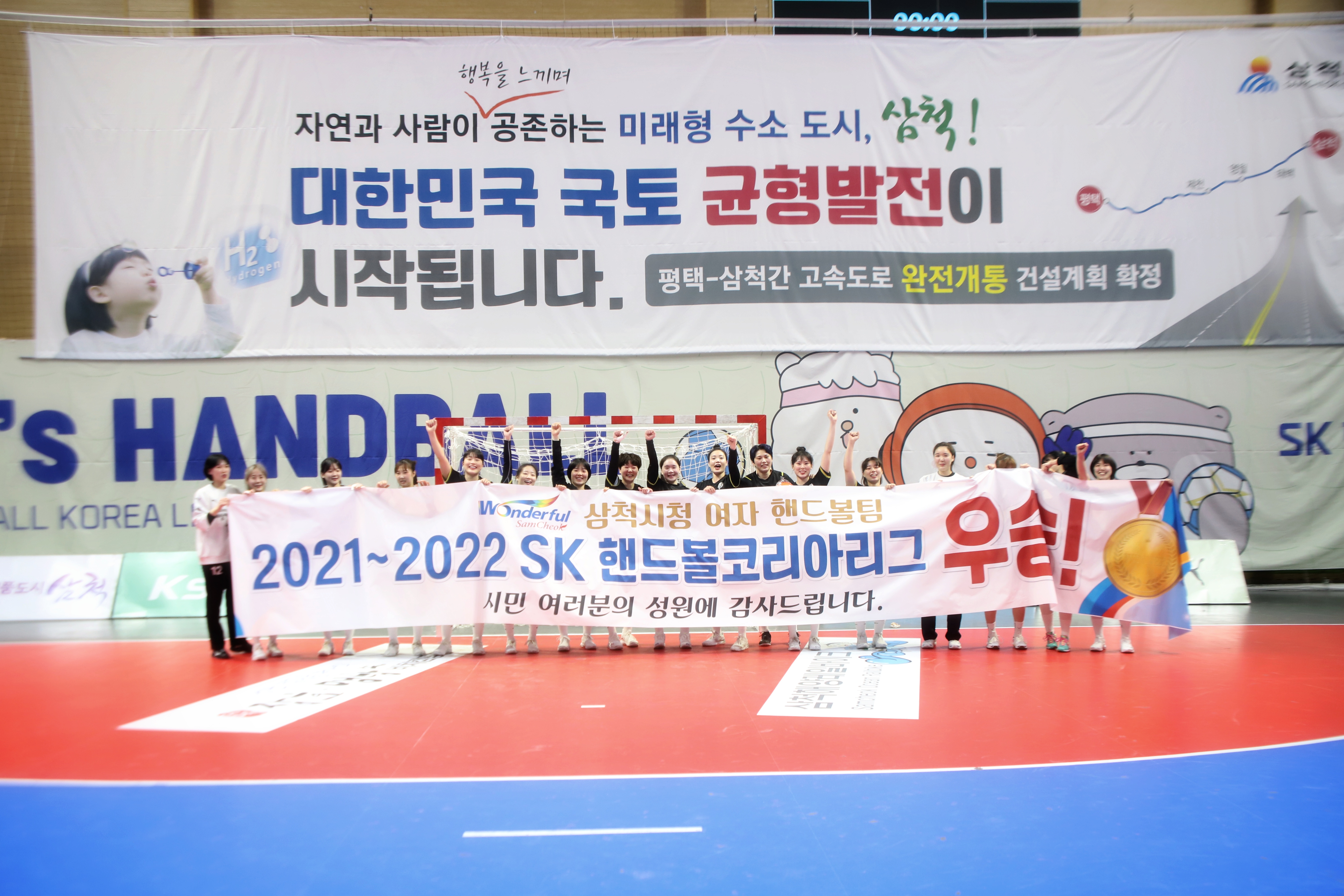 [강원사회복지신문 김종한 기자]=삼척시청 여자핸드볼팀이 지난 1월 6일 개최하여 오는 3월 18일에 막을 내릴 2021~2022 SK핸드볼코리아리그에서 여자 일반부 정규리그 우승을 일찌감치 확정했다. 삼척시청 핸드볼팀은 지난 1월 6일(목) 서울SK핸드볼 경기장에서 SK 슈가글라이더즈와의 첫 경기를 29-19 승리로 시작하여 지난...