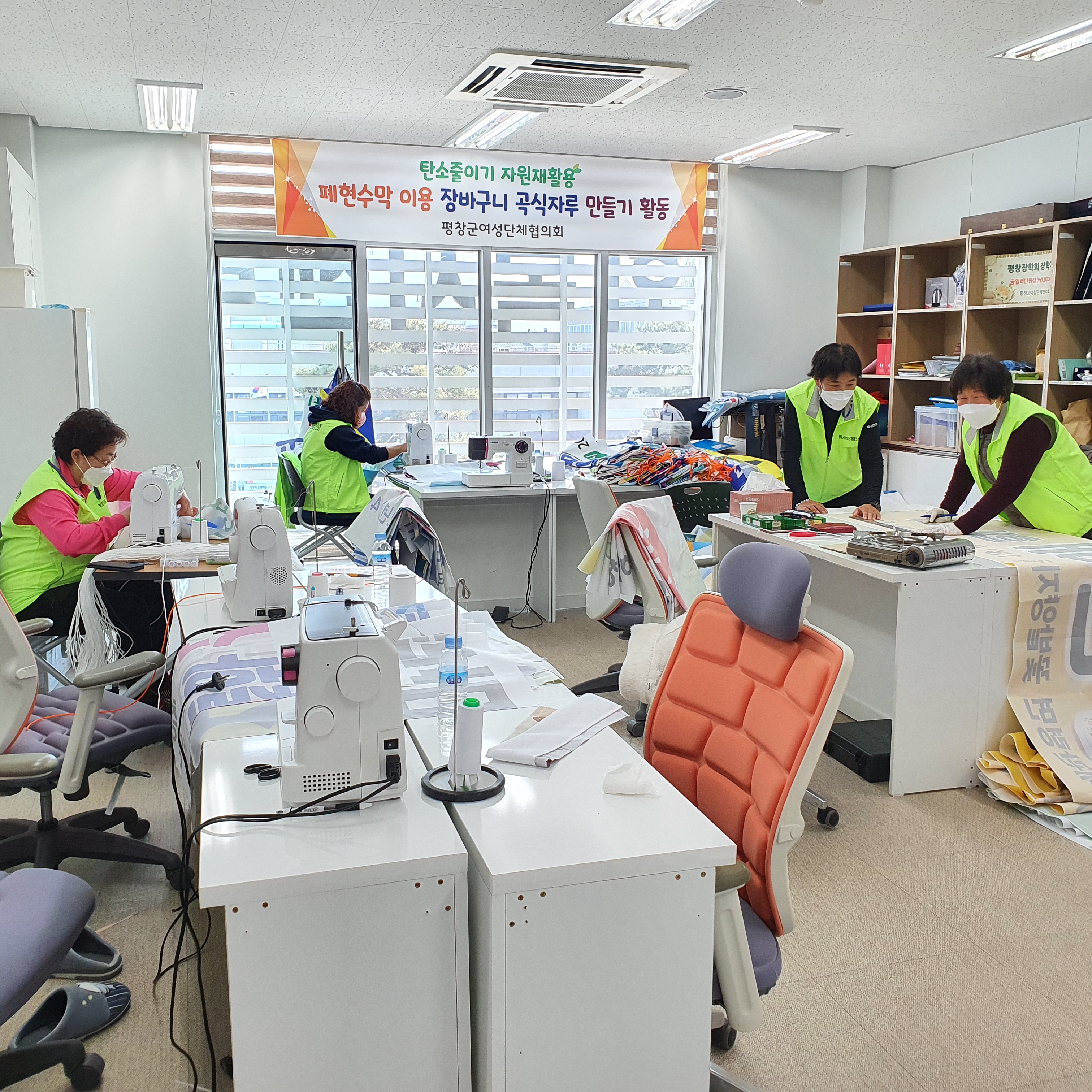 [강원사회복지신문 이정환 기자]=평창군여성단체협의회(회장 김복준)(이하 평창여협)는 지난 2월부터 폐현수막을 활용하여 장바구니와 곡식자루 만들기 봉사 활동을 진행하고 있다. 그동안 평창여협은 탄소 줄이기 캠페인을 지속해왔으며, 특히 올해는 폐자원을 활용한 사업을 연간사업으로 추진할 계획으로, 첫 사업으로 진...