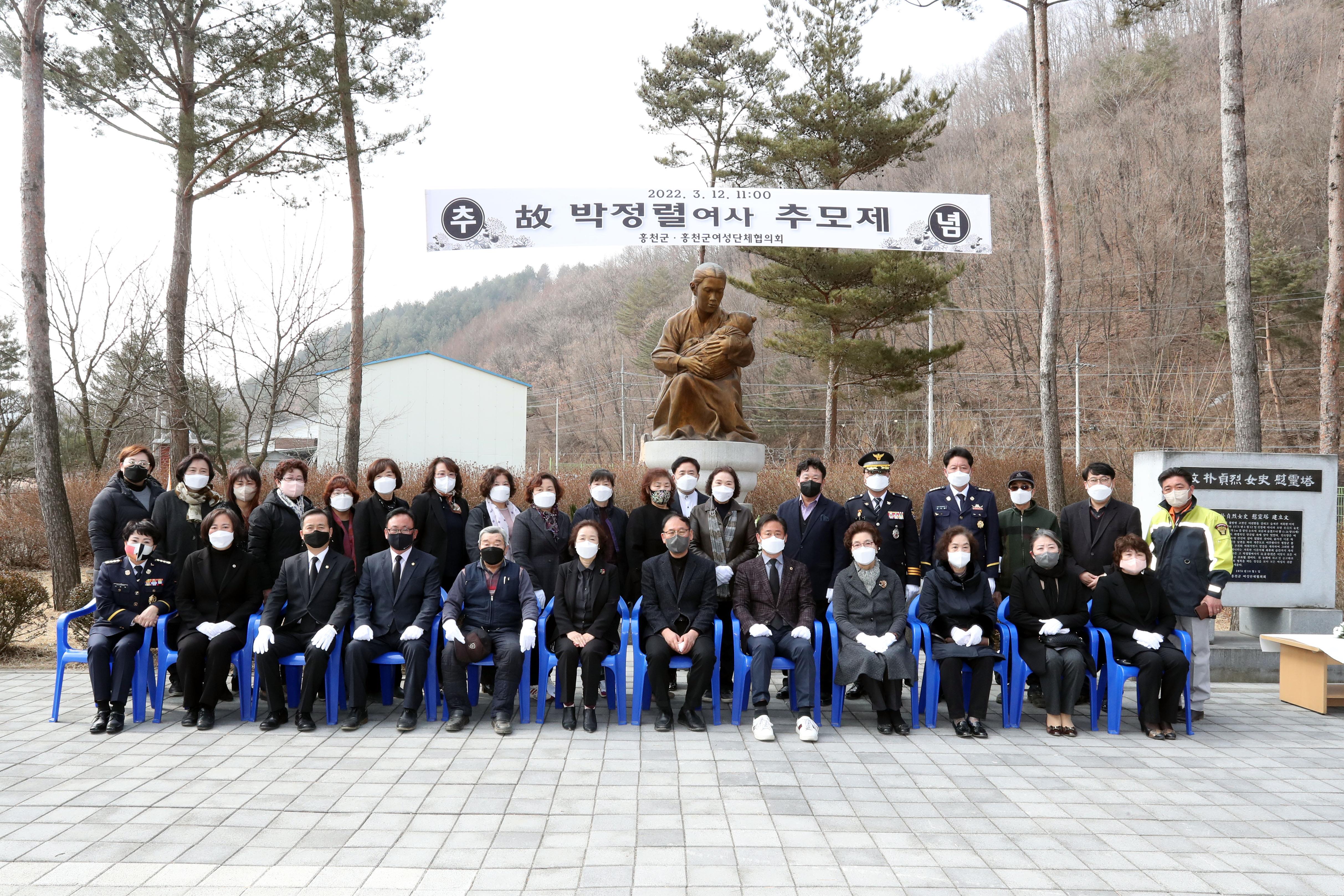 [강원사회복지신문 홍기한 기자]=홍천군 여성단체협의회(회장 김화자)는 지난 3월 12일 내면 자운리 박정렬 여사 추모공원에서 추모제를 실시했다. 추모제는 故 박정렬 여사의 넋을 기리기 위한 국가무형문화제 제57호 이수자 전지연 교수의 추모공연을 시작으로 故 박정렬 여사의 약력 및 경과보고, 헌화와 분향, 헌시 낭독...