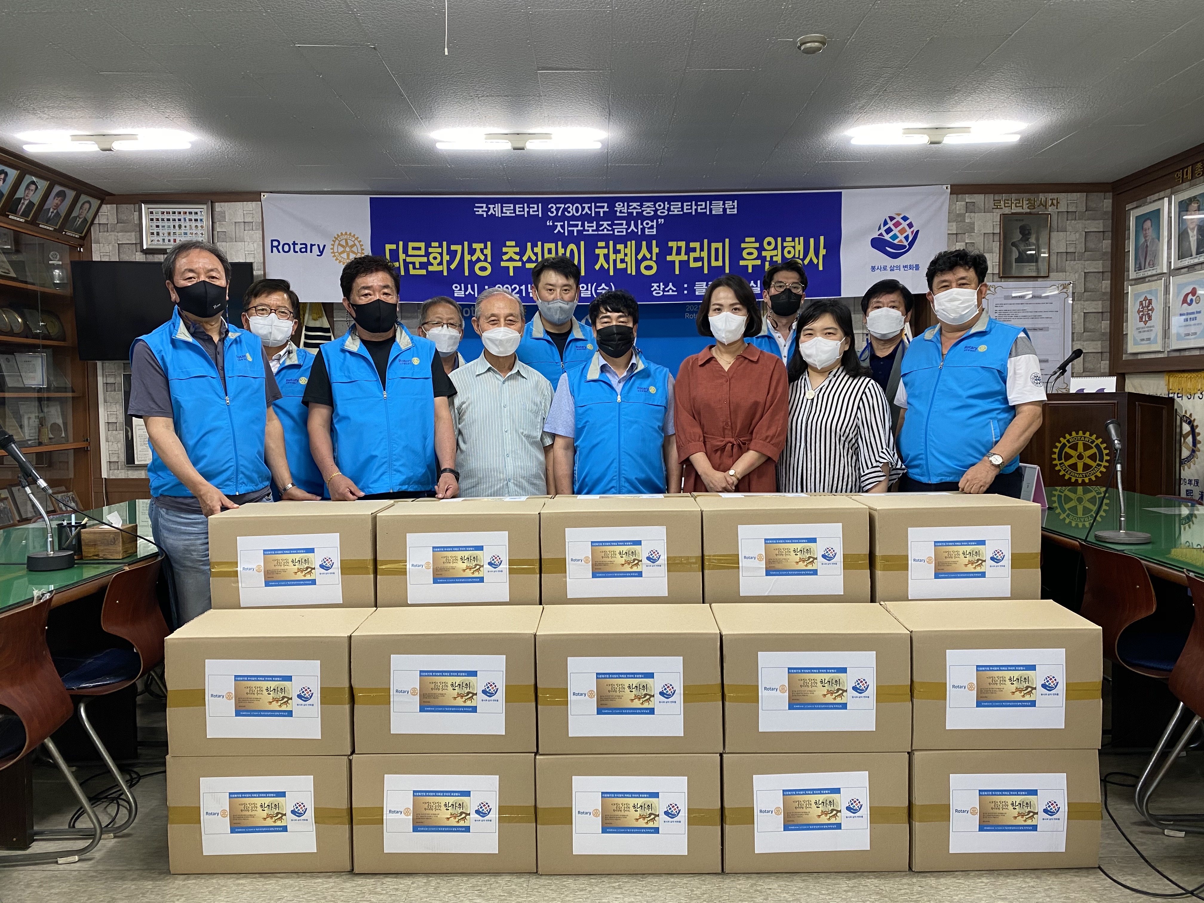 [강원사회복지신문 유경수 기자]=원주중앙로타리클럽(회장 김흥래)에서 2021년 추석 명절을 맞이하여 원주시건강가정·다문화가족지원센터(센터장 김효종)를 통하여 원주 내 취약가정(저소득가정, 한부모가정, 다문화가정 등) 40가정을 선정하여 각 가정에서 풍족한 명절을 보낼 수 있도록 식료품을 지원하였다. 식료품은 과...