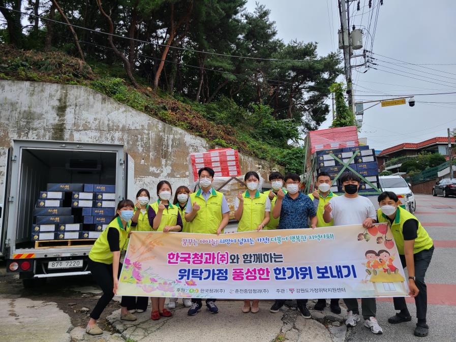 [강원사회복지신문 홍기한 기자]=한국청과(주)·춘천중앙청과(주) (대표이사 박상헌)는 지난 9월 13일 오전 10시 도강원가정위탁지원센터(관장 남궁제정)에 다가오는 추석을 맞이하여 강원도 내 위탁가정에 명절선물을 전달해달라며 과일 400박스(1600만원 상당)를 기탁하였다. 한국청과(주)·춘천중앙청과(주)는 코로나19의...