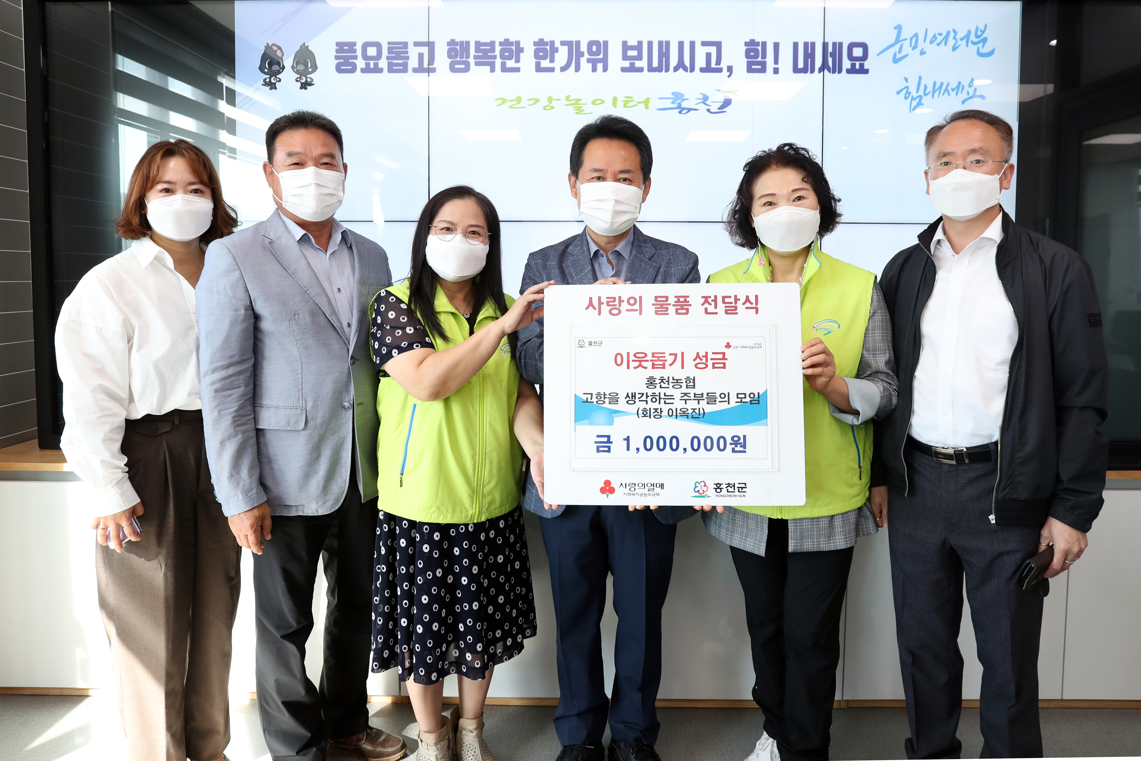 [강원사회복지신문 서은진 기자]=홍천농협 고향을 생각하는 주부들의 모임(회장 이옥진)은 지난 9월 15일 홍천군청을 방문, 어려운 이웃돕기 성금 100만원을 기탁했다. 이옥진 회장은 "코로나19 장기화로 어려운 상황에 처한 지역 내 소외된 이웃들에게 조금이나마 도움이 되고자 기부를 하게 됐다"며 "앞으로도 지속적인 나...