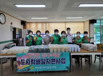 [강원사회복지신문 이정환 기자]=평창군 미탄면새마을부녀회(회장 지은미)는 지난 9월 6일 도시락 100개를 만들어 5개리(창1리, 창2리, 평안2리, 백운리, 한탄리)의 마을 어르신에게 점심시간에 맞춰 직접 전달하는 방식으로 장수식당을 운영하였다. 이날 행사에는 미탄방앗간(대표 남광순)에서 떡(콩백설기)을 후원하였다.