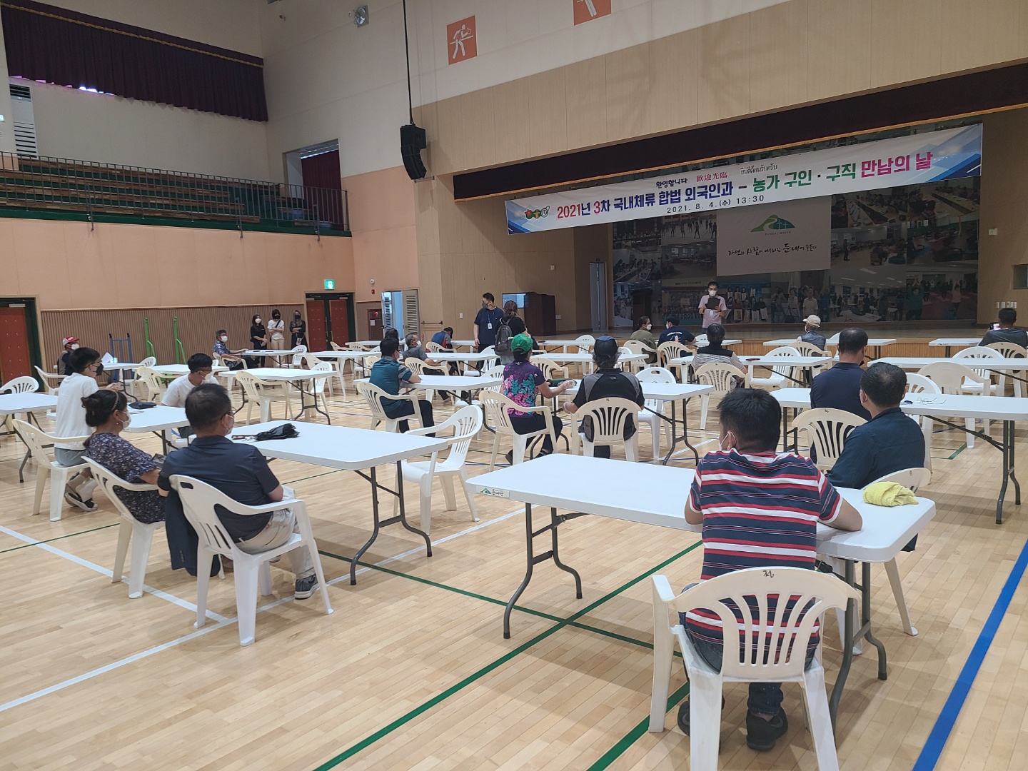 [강원사회복지신문 홍기한 기자]=횡성군(군수 장신상)은 지난 8월 4일, 오후 1시 30분 둔내복합체육센터에서 '2021 농가와 외국인근로자 만남의 날'을 개최하였다. 이번 행사는 코로나19 장기화로 농업 분야 인력난이 심화됨에 따라 농가 일손 부족을 덜어주기 위해 마련되었다. 지난 5월 21일, 1차 행사에 이어 7월 1일, 2차...