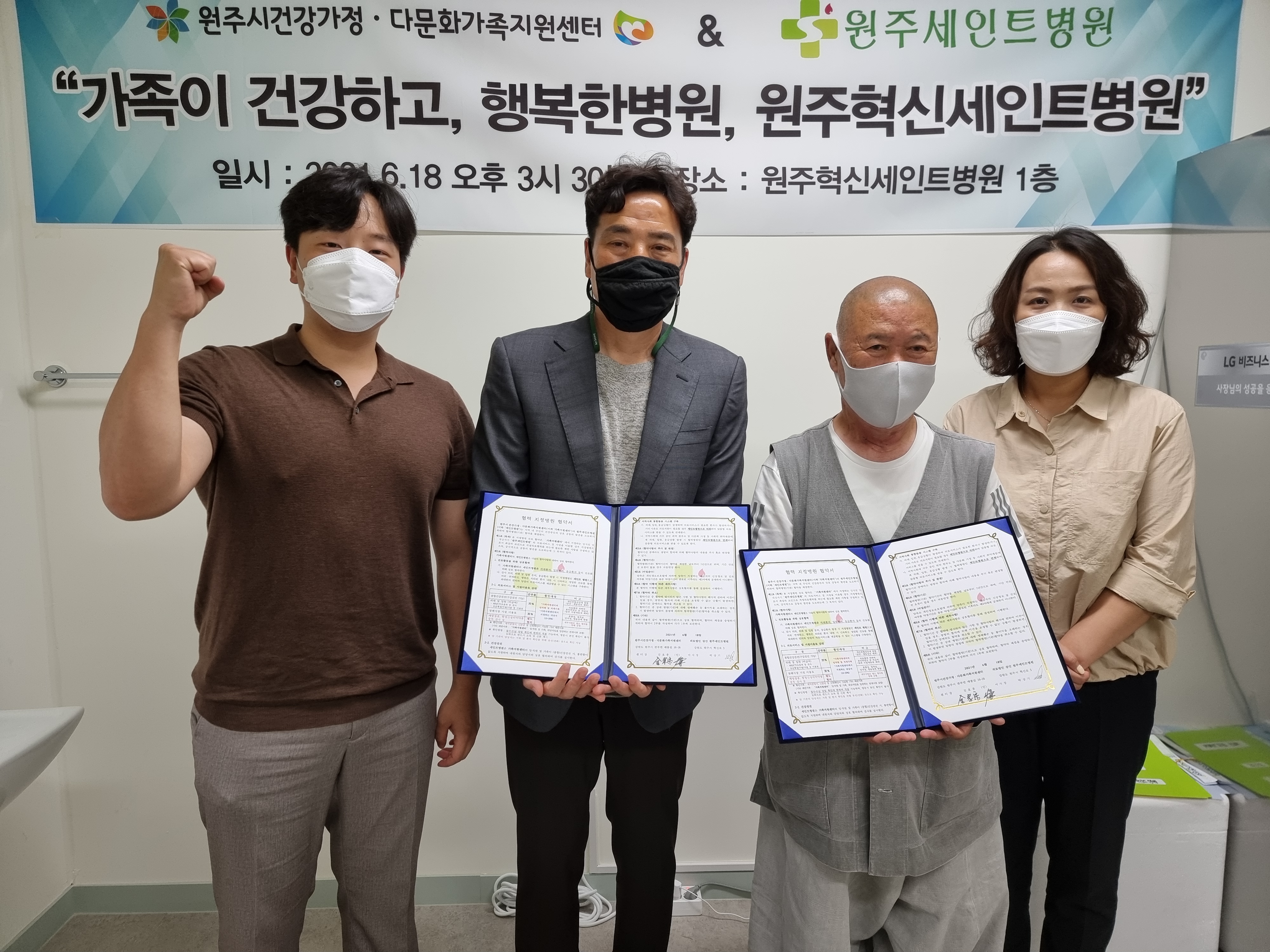 [강원사회복지신문 서은진 기자]=원주시건강가정·다문화가족지원센터(센터장 김효종)와 원주세인트병원(이사장 박상기)는 지난 6월 18일 사회적 취약계층의 복지 사각지대 개선과 건강 증진을 지원하기 위한 후원 협약을 체결하였다. 이번 협약을 통하여 원주시건강가정·다문화가족지원센터에서 서비스를 제공 중인 지역사...