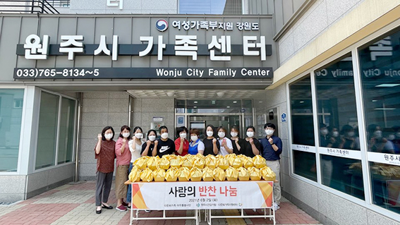 [강원사회복지신문 서은진 기자]=원주시건강가정·다문화가족지원센터(김효종 센터장)는 "지난 6월 2일 다문화가족나눔봉사단 '아우름 봉사단'에서 취약계층 50가정에 반찬 꾸러미를 후원하였다."고 밝혔다. 아우름 봉사단은 중국, 베트남, 필리핀, 태국, 네팔, 우즈베키스탄 결혼이민자와 그 가족들 및 한국인을 포함한 총 ...