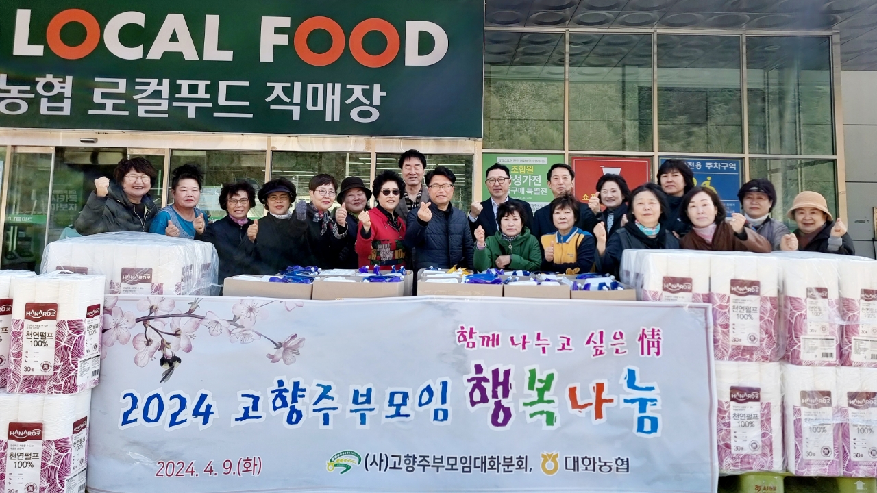 평창 대화농협(조합장 김진복)과 고향주부모임 대화분회(회장 김경자)는 지난 4월 9일 지역 내 홀몸어르신을 비롯한 취약농가에 생필품을 지원하는 ‘2024 고향주부모임 행복나눔’ 행사를 실시하였다. 고향주부모임 회원들은 28가구마다 직접 방문하여 안부를 묻고 세제, 라면, 화장지 등으로 구성된 생필품 꾸러미를 전달하...