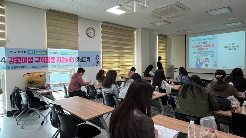 홍천군 여성구직활동 지원사업 선정자 예비 교육이 지난 3월 27일 홍천연봉도서관 3층 문화강좌실에서 진행됐다. 여성구직활동 지원사업은 강원특별자치도에 거주하는 40세 이상부터 59세 이하인 미취업 여성을 대상으로 월 50만원씩 최대 6개월간 취업준비 비용(포인트)를 지원해 주는 사업이다.
