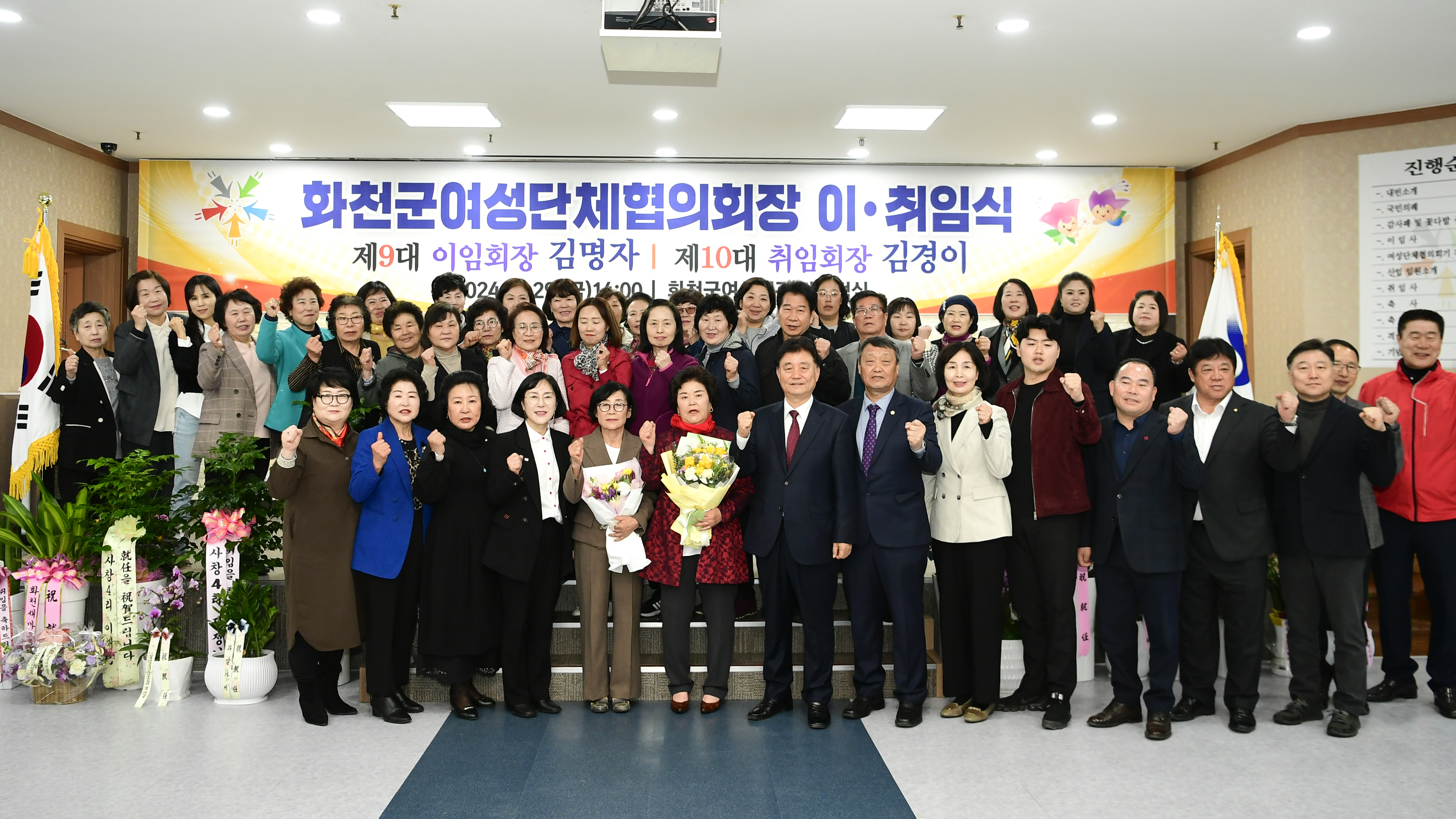 화천군 여성단체협의회장 이·취임식이 지난 3월 29일 화천군 여성회관에서 최문순 군수를 비롯해 제9대 김명자 이임회장, 제10대 김경이 신임회장, 박대현 도의원, 노이업 군의장과 군의원, 기관사회단체장, 여성단체 회원들이 참석한 가운데 열렸다.