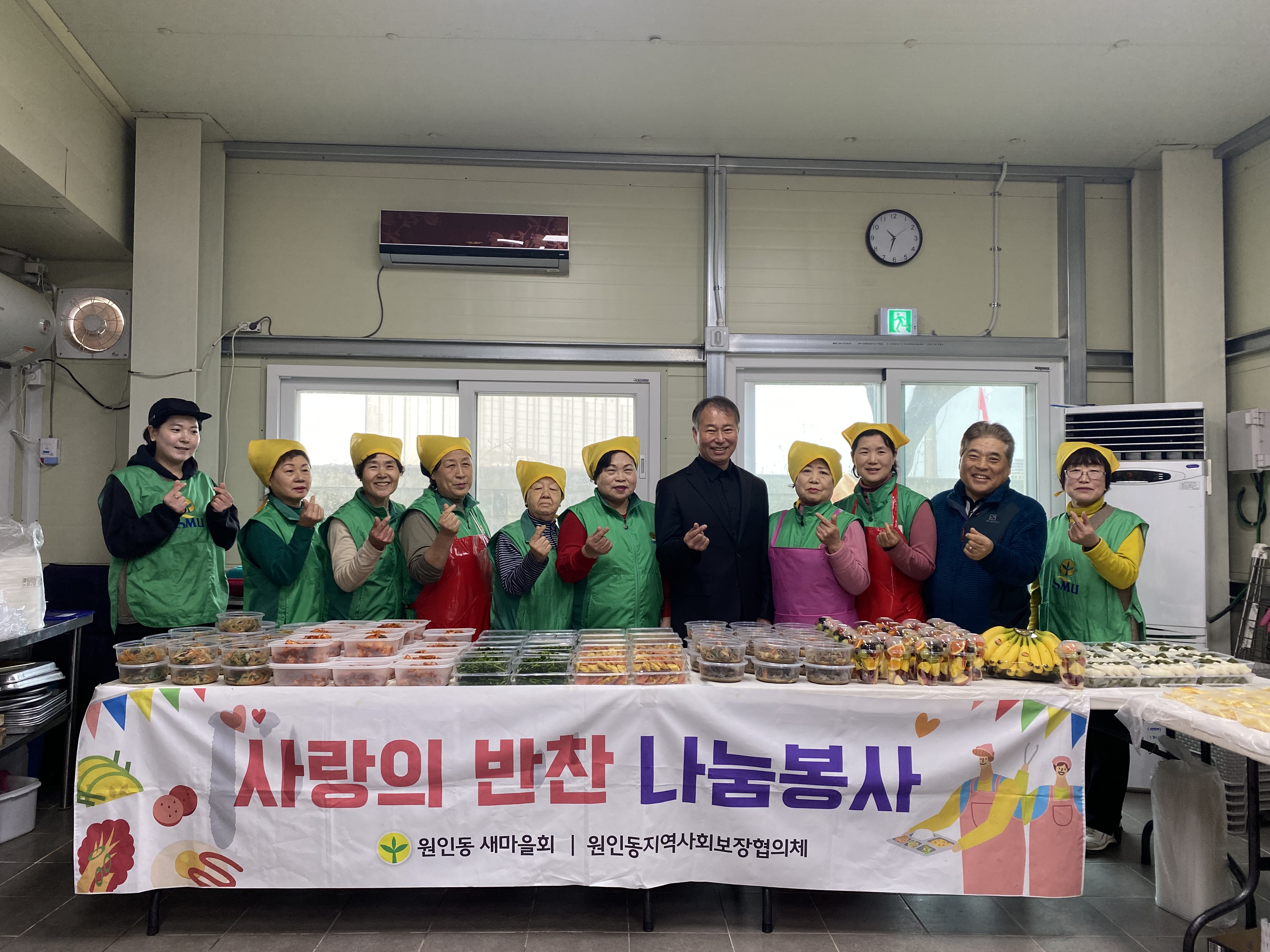 원주시 원인동새마을부녀회(회장 윤영혜)와 원인동지역사회보장협의체(위원장 엄재근)은 지난 3월 12일 이웃사랑 실천의 일환으로 사랑의 반찬 나눔 봉사를 전개했다. 이날 반찬 봉사를 위해 원인동지역사회보장협의체에서는 재료 구매 비용 30만 원을 후원하였으며, 밥상공동체는 컵과일을 김영애 체육회원은 떡을 후원했다...