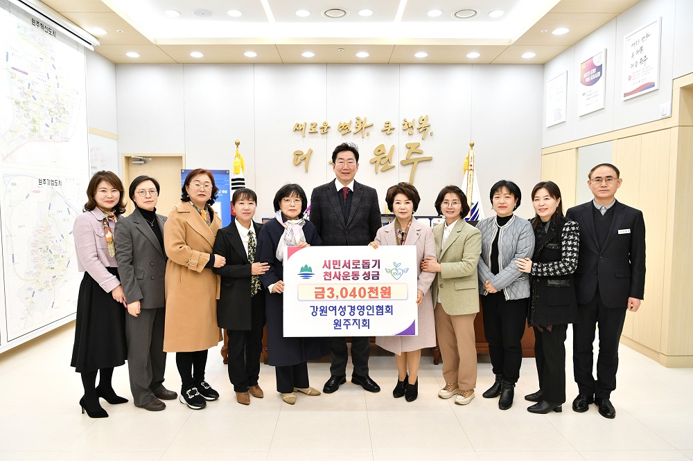 304만 원의 천사운동 후원금 전달 차상위계층에 월 18만 원 생계비 지원 등 강원여성경영인협회 원주지회(회장 윤영순)는 지난 2월 22일 오전 10시 원주시청 시장 집무실에서 천사운동 후원금 304만 원을 기탁했다. 이날 전달식에는 윤영순 회장과 최소연, 신성숙, 이은영, 김에녹, 진미 회원이 참석했다. 2017년에 창립된 강...