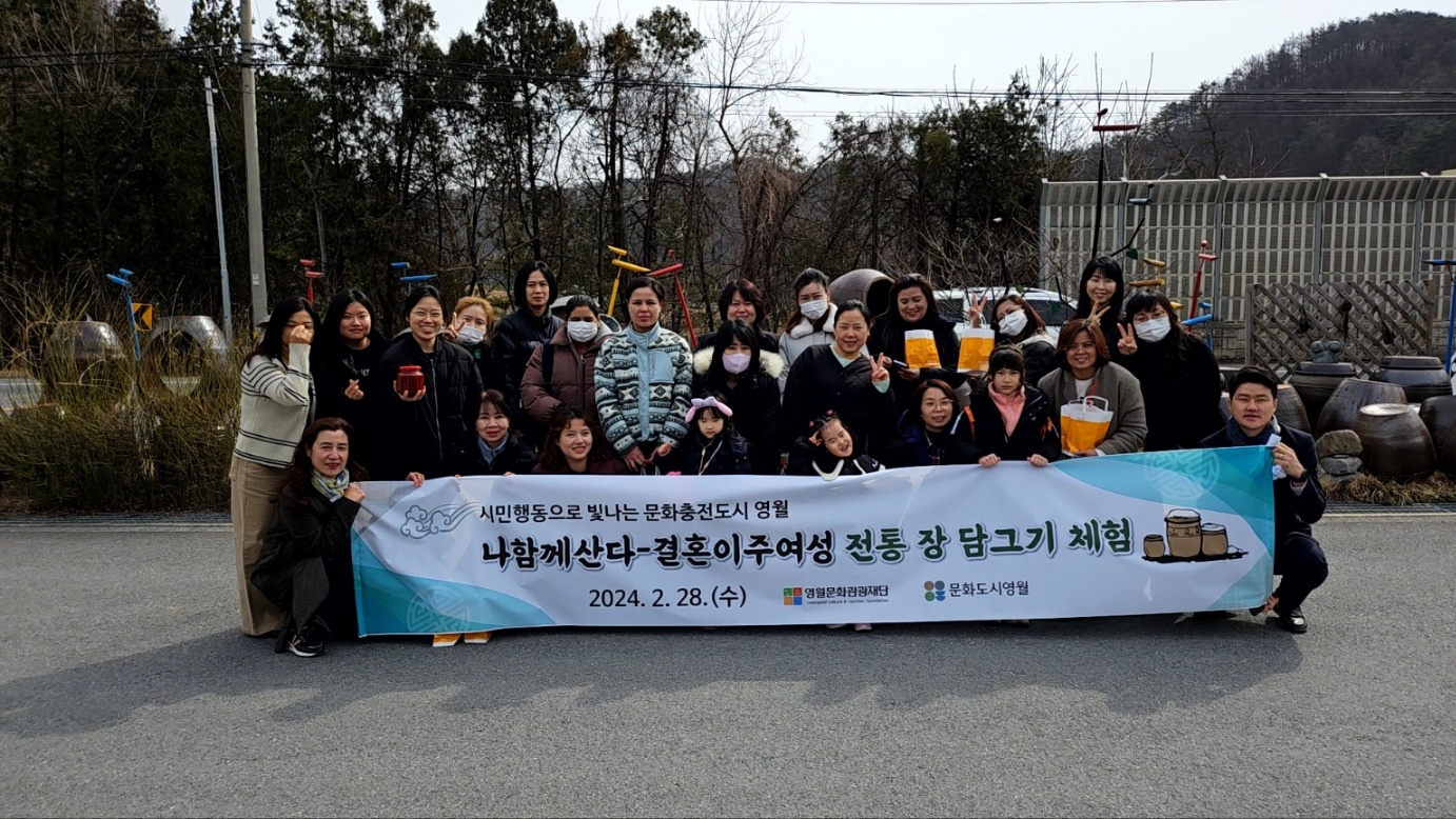 (재)영월문화관광재단은 지난 2월 28일 영월농협가공사업소에서 결혼이주여성들을 대상으로 다문화가정 고추장 담그기 체험 행사를 개최한다. 이번 행사는 문화도시 조성사업의 일환으로 관내 결혼이주여성에게 정착 지원 및 이해를 돕고 소통과 화합을 시간을 갖기 위해 마련했으며, 이날 만든 고추장은 관내 다문화 가정에...