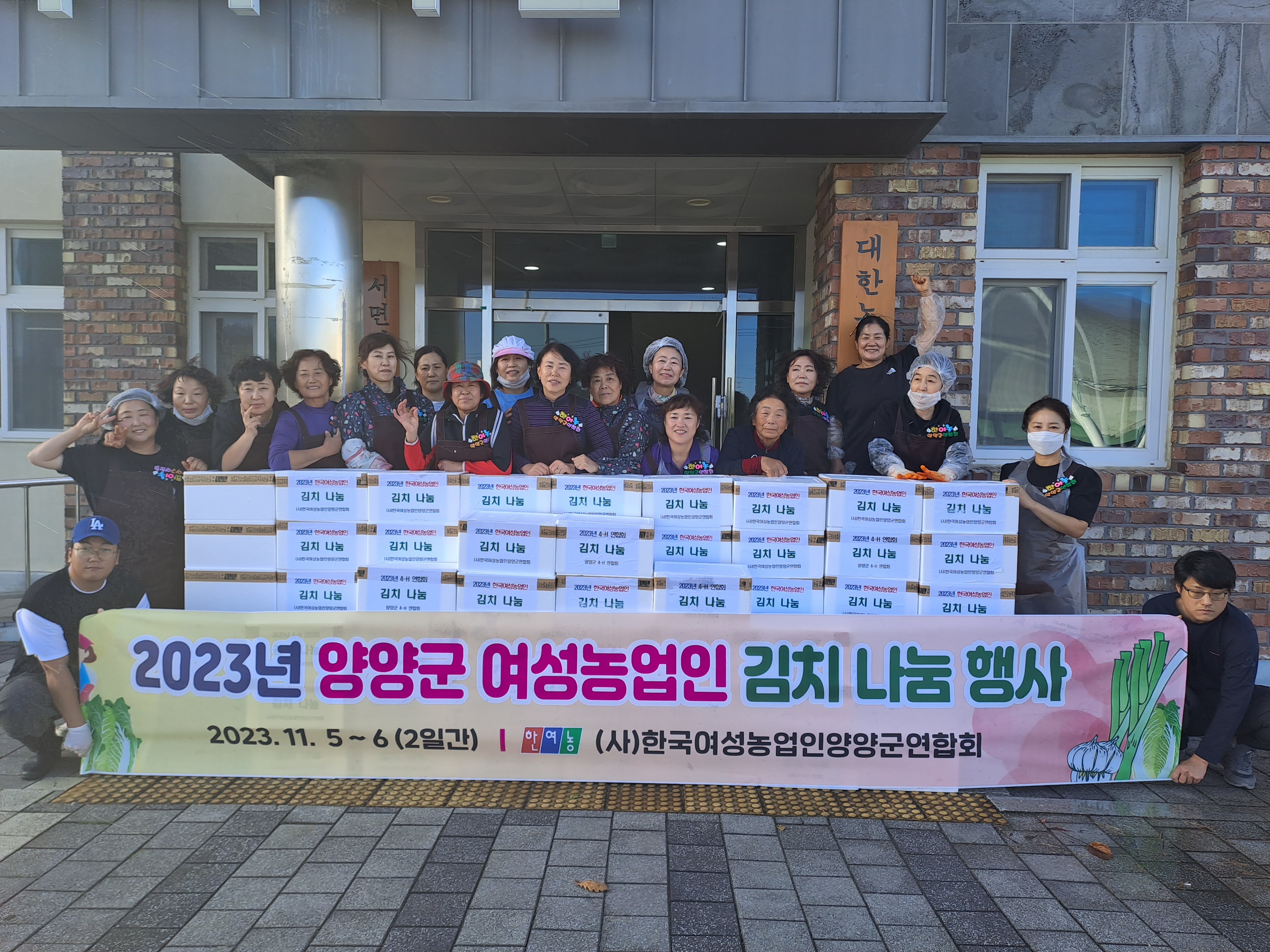 한국여성농업인 양양군연합회 회원 30명, 지역 저소득층 70가구에 김치 전달 한국여성농업인 양양군연합회(회장 손연실)는 지난 11월 5일(일), 6일(월) 양일간 김치를 담가 지역 내 불우이웃 70가구에 전달했다. 양양군이 지원한 이번 김치 나눔 행사는 여성농업인들이 직접 생산한 우리 농산물의 안전성과 우수성을 알리고,...
