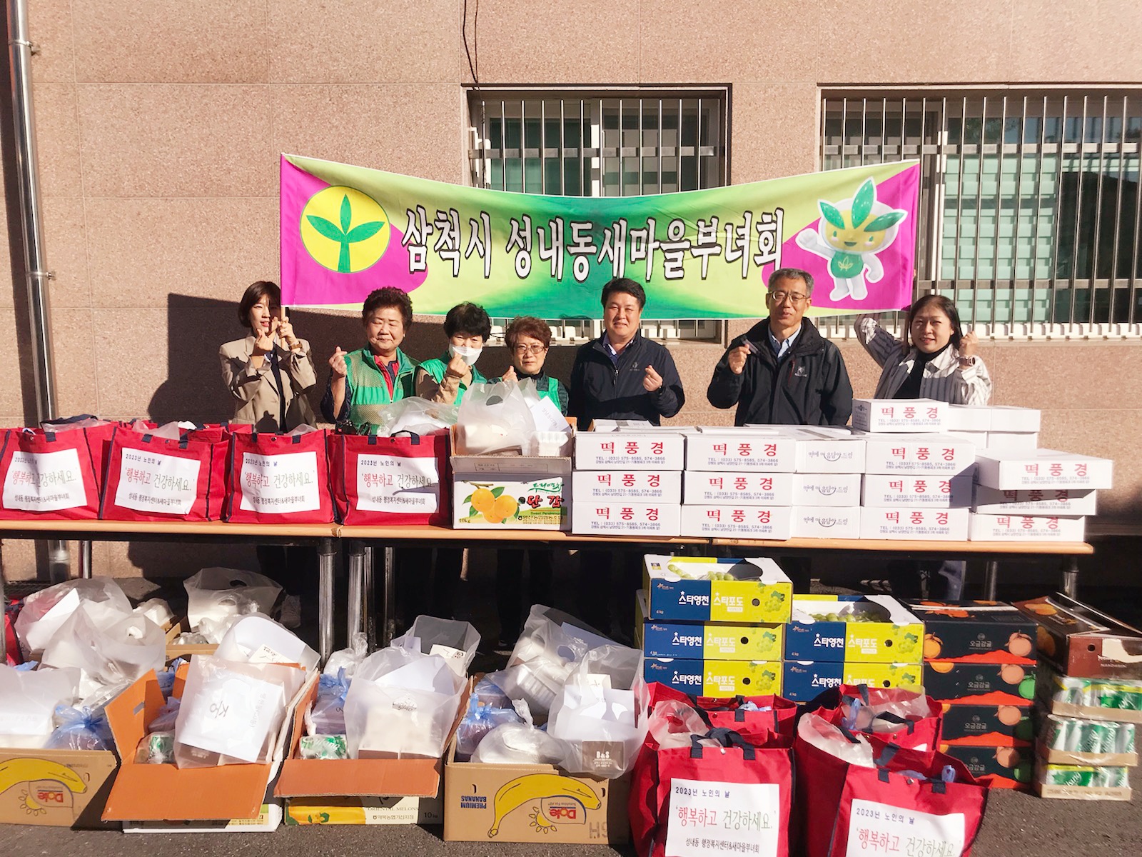 삼척시 성내동새마을부녀회(회장 이영자)는 '2023년 제27회 노인의 날 기념 경로잔치'를 맞아 지난 10월 20일(금)에 부녀회원들이 정성껏 준비한 음식을 성내동 경로당 24개소에 전달했다.