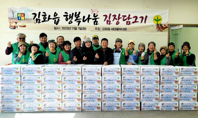 철원군 김화읍 새마을부녀회 회장 신혜순과 회원 15여명은 지난 11월 5~7일 청양마을 농산물가공 공장에서 '2023 김화읍 행복나눔 김장담그기'를 실천, 300포기를 담궈 지역 취약계층 80세대에 전달하며 이웃사랑을 실천했다. 김화읍 마을공동체 자치역량강화사업의 일환으로 추진한 행복나눔 김장담그기는 김화읍 새마을 부...