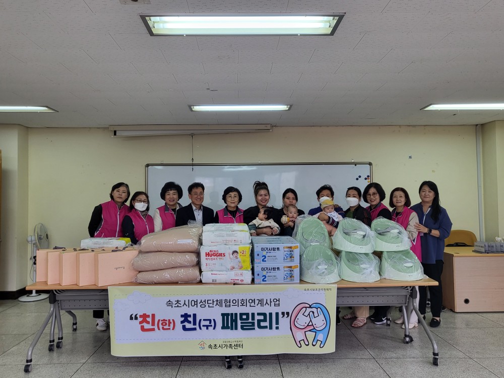속초시가족센터(센터장 최종구)는 지난 10월 18일(수) 오전 11시 센터 내 교육장에서 속초시여성단체협의회와 연계하여 다문화가족 6 가정에게 출산용품 전달식을 진행하였다. 1:1 친부모결연 사업으로 진행되는 이번 전달식은 2023년 출산한 다문화가정에게 아기변기, 기저귀, 분유, 아기옷 등 출산 후 필요한 용품을 지원하...