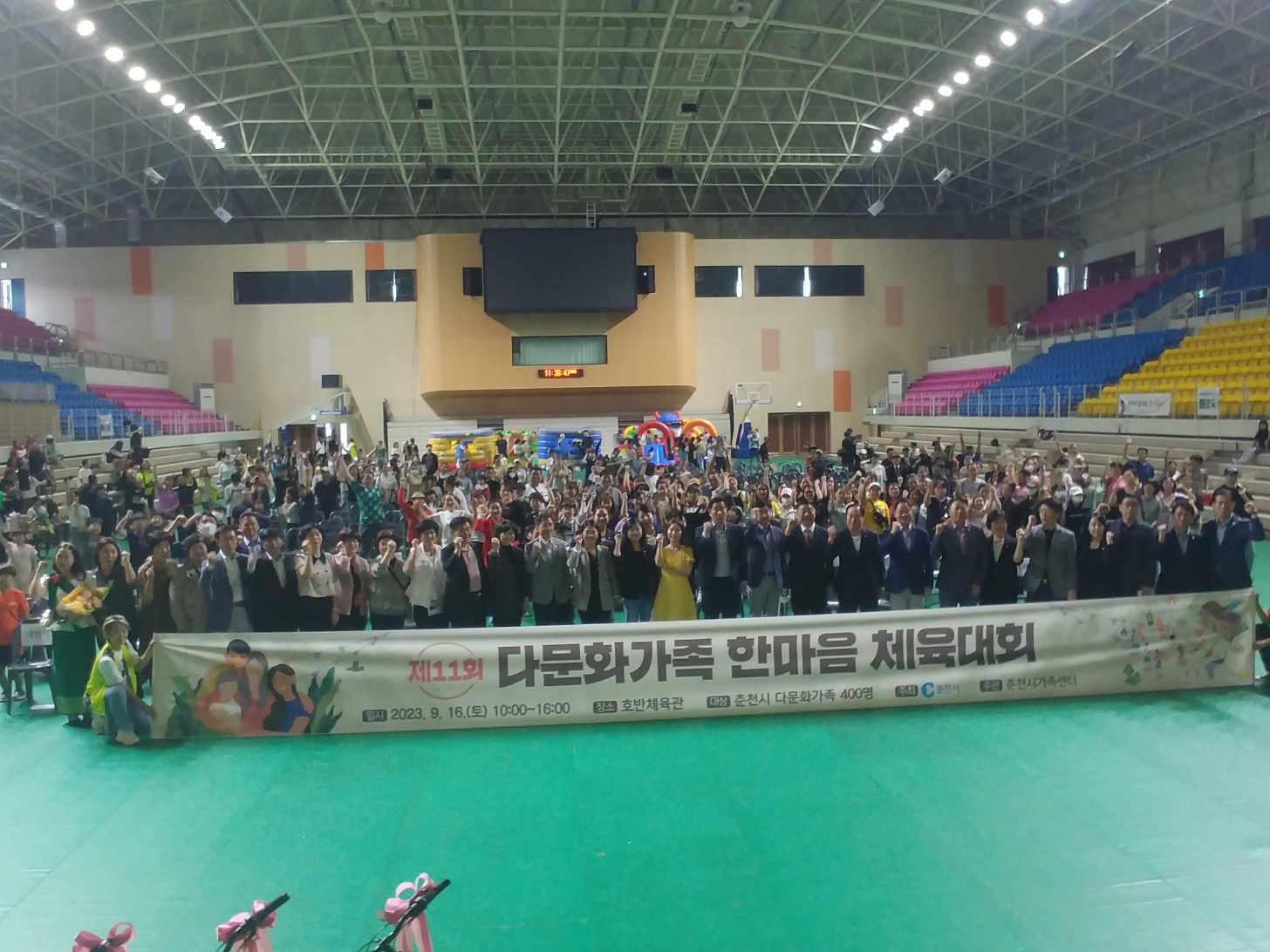 [강원사회복지신문 서은진 기자]=다문화 가족 및 외국인, 자원봉사자 등 400명 참가 예정 제11회 춘천시 다문화가족 한마음 체육대회가 지난 9월 16일 호반체육관에서 개최되었다. 다문화가족 한마음 체육대회는 소통과 화합의 시간을 통해 문화적 차이를 극복하고 다문화가족들의 관계 향상을 위해 열리는 대회로, 코로나19...
