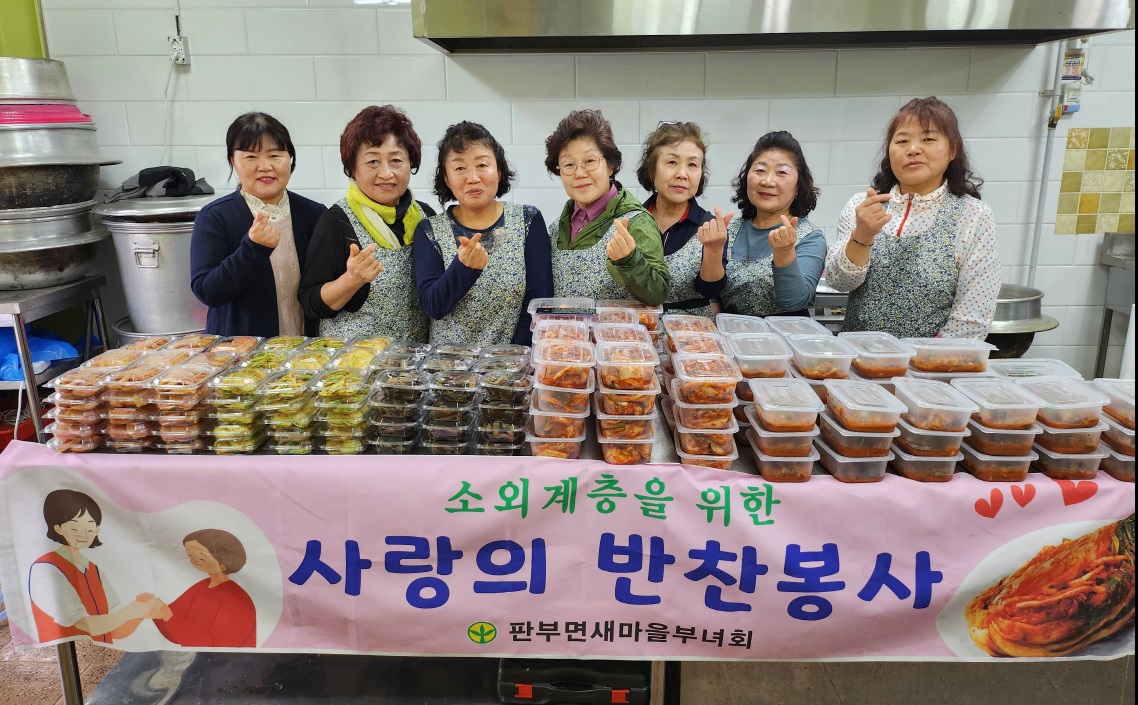 [강원사회복지신문 김도연 기자]=원주시 판부면 새마을부녀회(회장 노순일)는 지난 4월 11일 판부면 행정복지센터에서 사랑의 반찬 나눔 봉사를 실시했다. 이날 회원들은 이른 아침부터 정성을 담아 직접 만든 코다리무조림, 호박전, 가지무침 등 영양 가득한 반찬을 독거노인 등 소외계층 40여 가구에 전달했다. 노순일 회장...