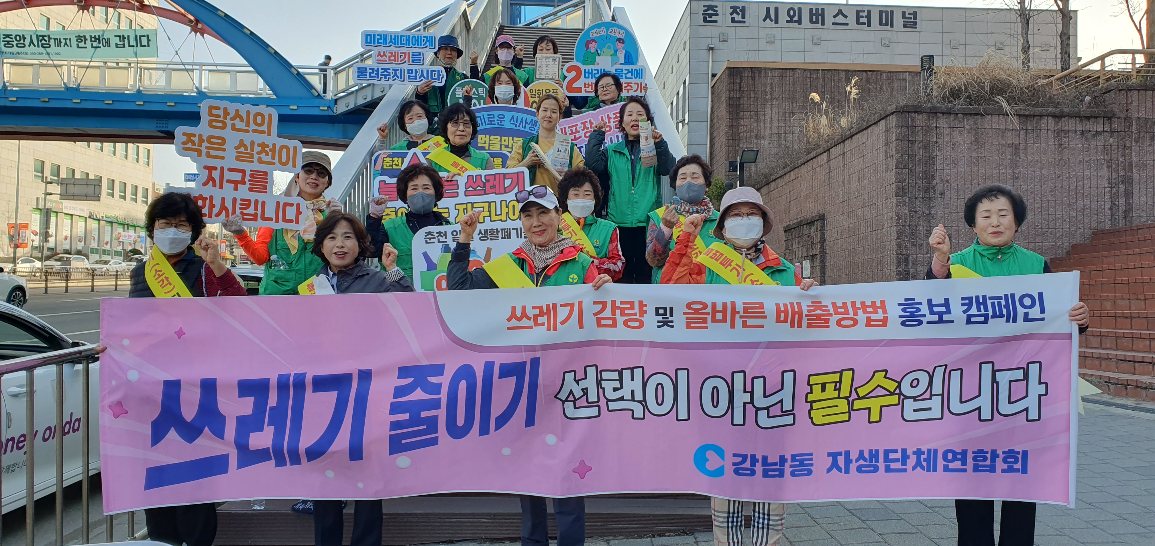 [강원사회복지신문 홍기한 기자]=춘천시 강남동새마을부녀회(회장 유영근)는 지난 3월 22일 춘천시 강남동 일대에서 자원순환 캠페인을 했다.