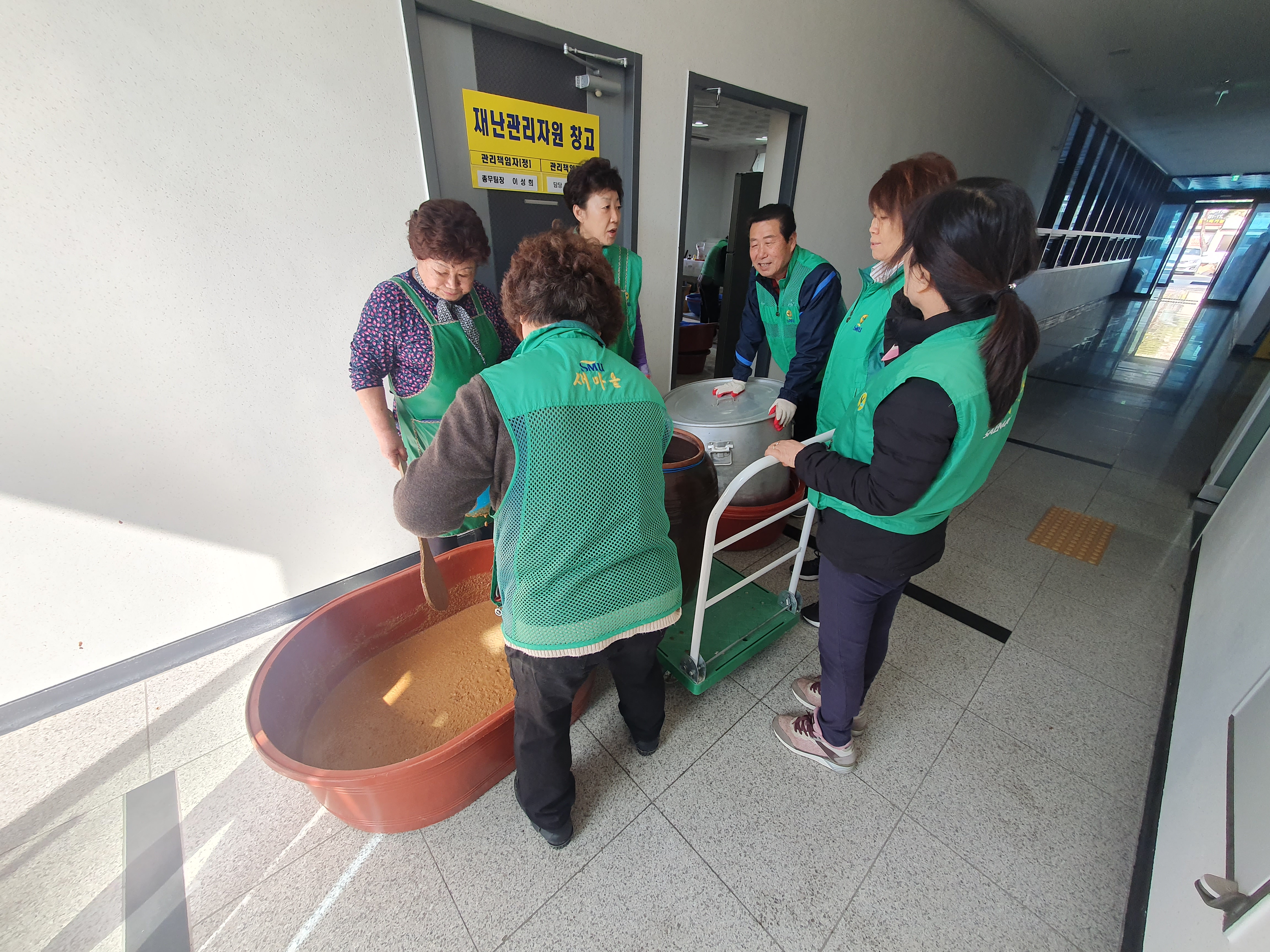 [강원사회복지신문 서은진 기자]=원주시 봉산동 새마을부녀회(회장 최인순)는 지난 3월 16일 봉산동 행정복지센터 1층 주방에서 사랑의 장 담그기 행사를 실시했다. 이른 아침부터 회원들이 열심히 담근 장은 숙성과정을 거쳐 관내 취약 계층에게 전달될 예정이다.