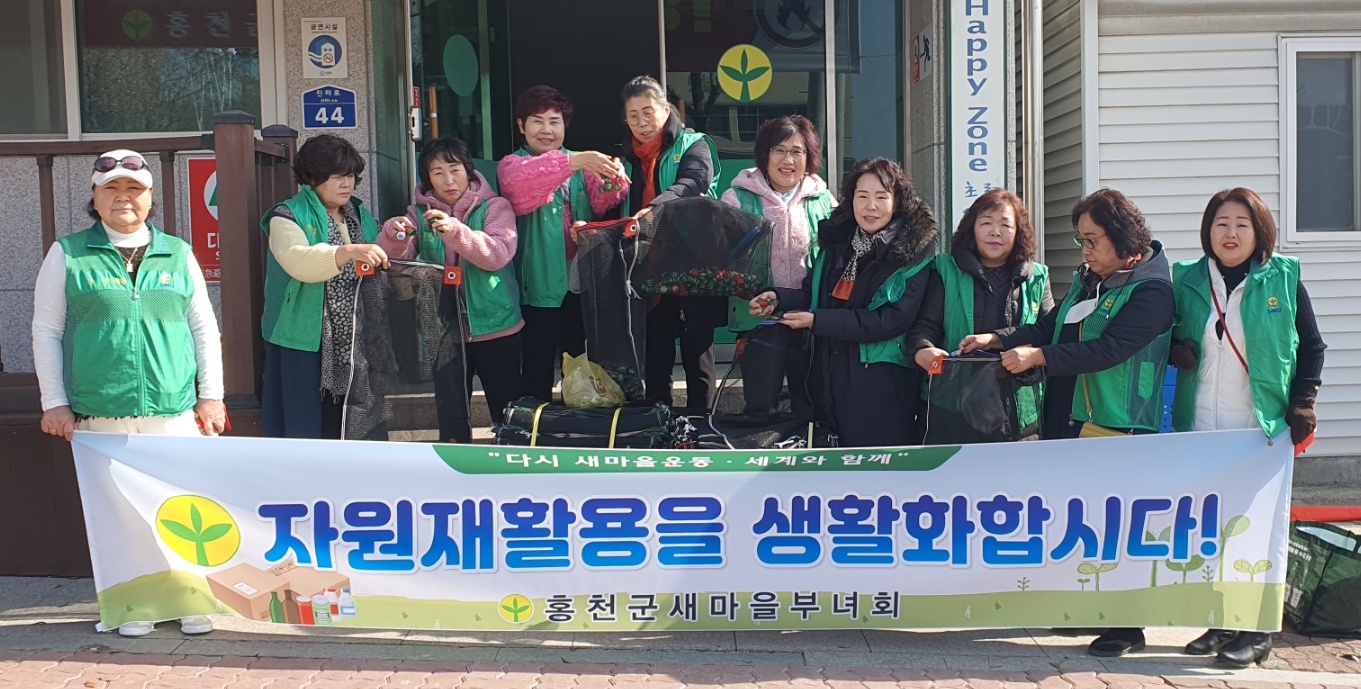 [강원사회복지신문 김도연 기자]=홍천군새마을부녀회(회장 박순옥)는 지난 2월 15일 오전 11시 홍천군새마을회관에서 자원재활용 생활화운동 발대식을 개최했다. 자원재활용 생활화운동은 새마을운동 추진방향 중 하나로 버려지는 자원을 재활용해서 친환경 생활 정착 및 순환경제, 자연생태를 보호하는 운동이다. 홍천군새마...