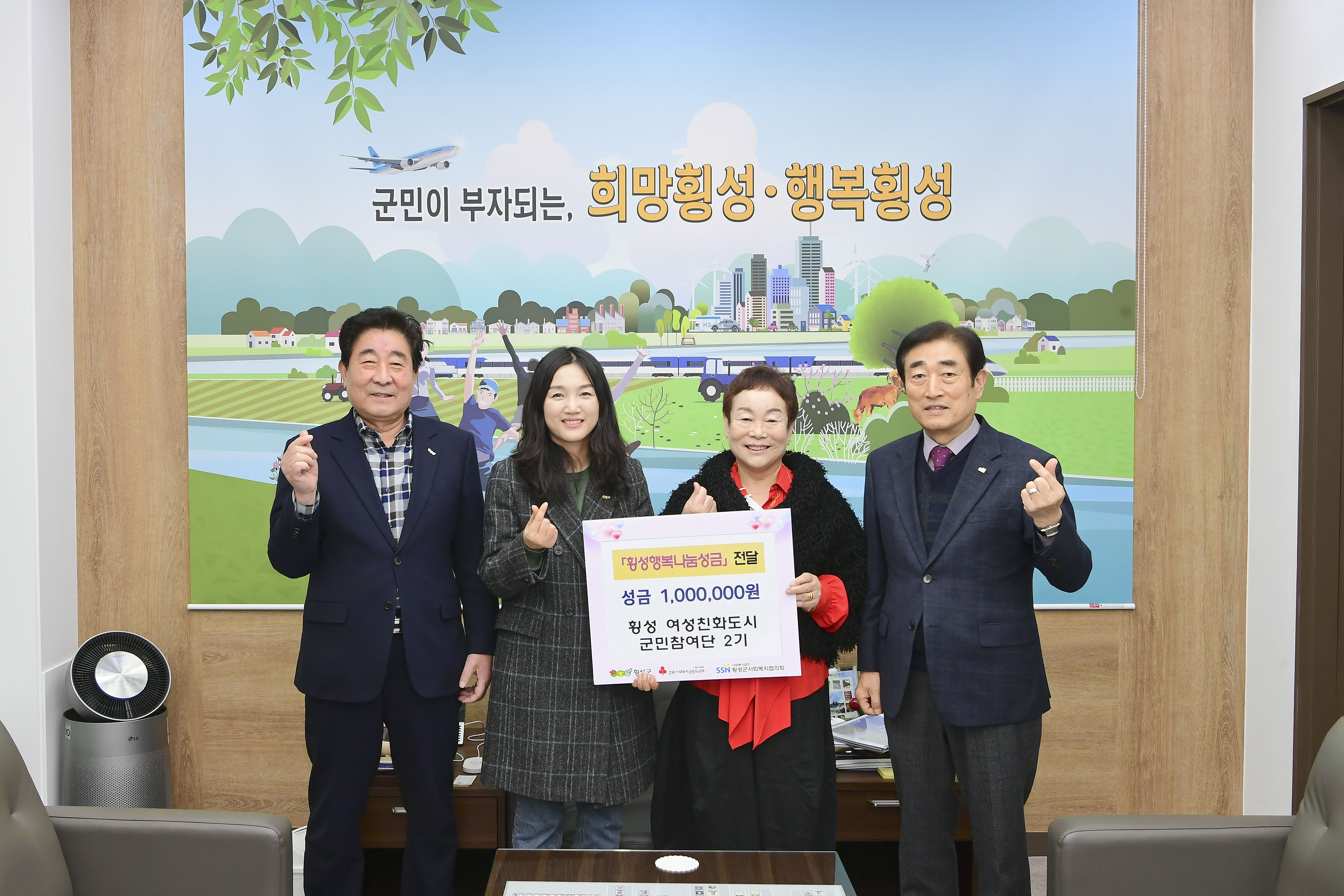 [강원사회복지신문 홍기한 기자]=횡성 여성친화도시 군민참여단(단장 최기순) 2기는 지난 2월 21일(화) 횡성군청 군수집무실에서 횡성행복나눔성금 100만원을 기탁했다.