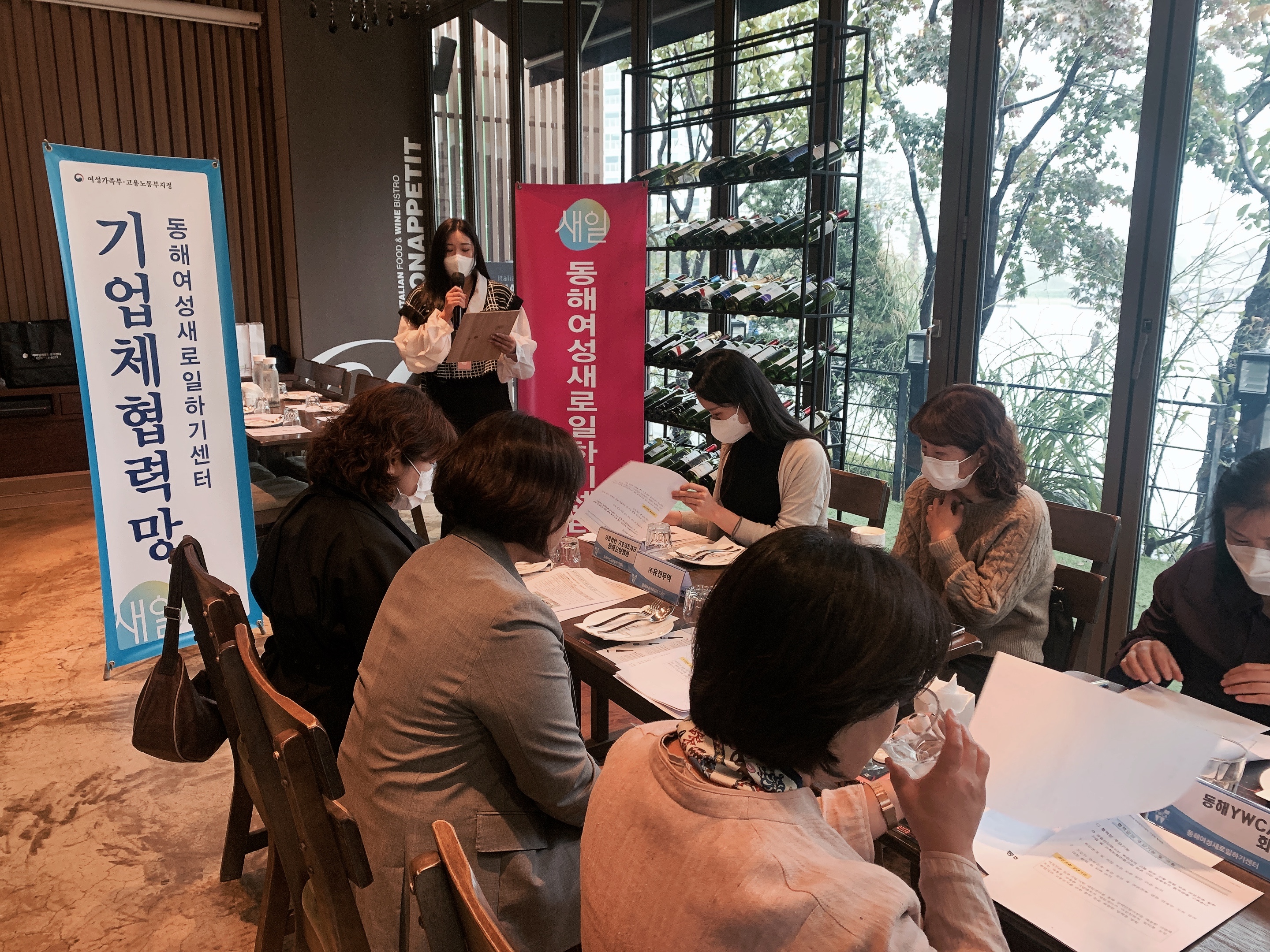 [강원사회복지신문 서은진 기자]=동해여성새로일하기센터 기업체협력망은 (주)유진무역 유하나과장 외 9명, 동해여성새로일하기센터 센터장 금후자로 구성되었다. 이날 회의에서 기업체협력망은 2022년 새일센터가 추진하고 있는 직업교육훈련, 집단상담프로그램, 새일여성 인턴십지원, 취업연계활동, 사후관리 사업보고에 따...