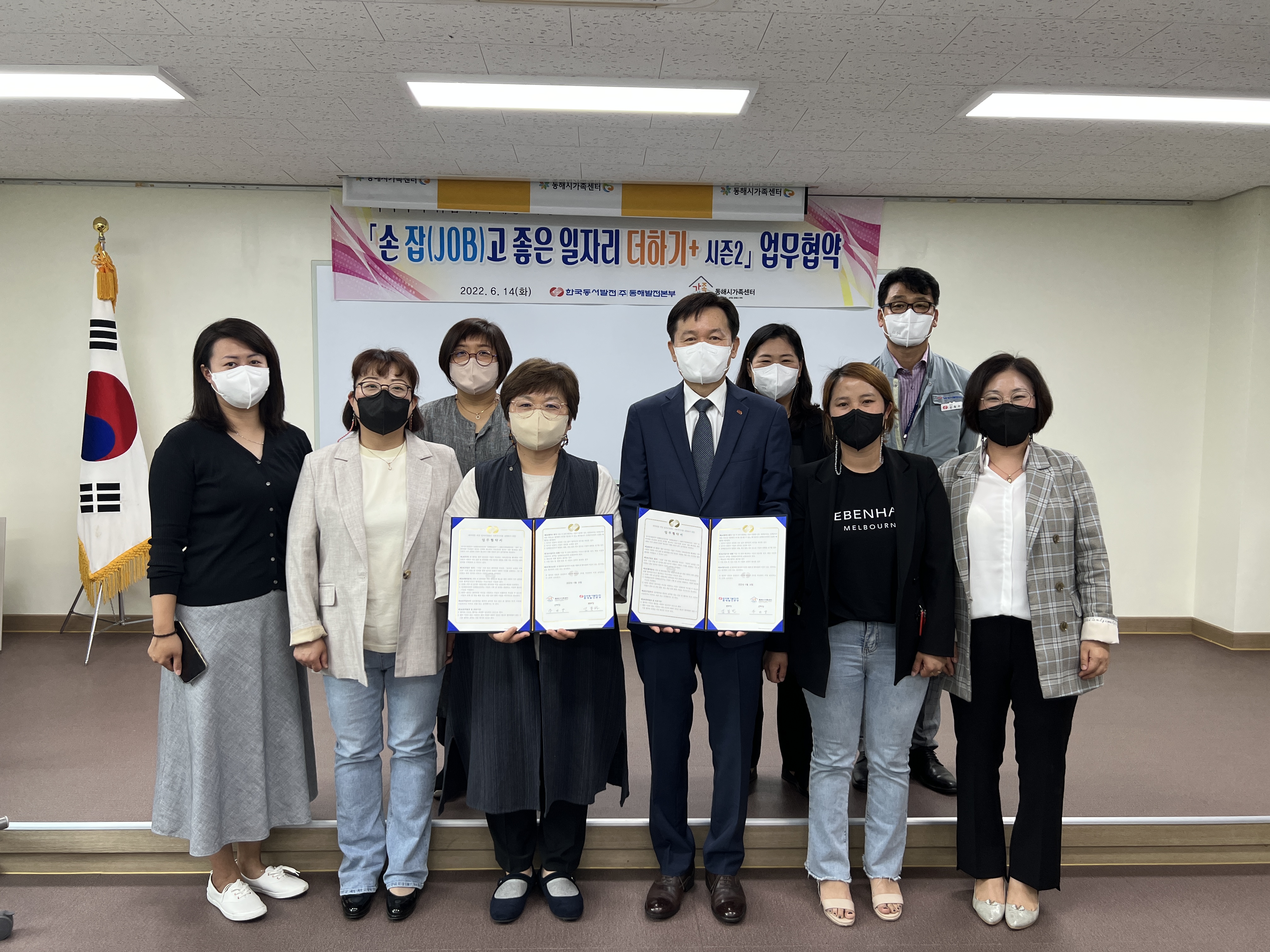 [강원사회복지신문 김종한 기자]=한국동서발전(주) 동해발전본부(본부장 김봉빈)는 지난 6월 14일(화) 동해시 가족센터에서 경력단절 여성들의 일자리 창출을 위한 '손 잡(JOB)고 좋은 일자리 더하기+'사업 업무협약을 체결했다고 밝혔다. 이번 협약은 좋은 일자리 창출 실천 의지를 바탕으로 동해시와 동서발전이 경력단절 ...
