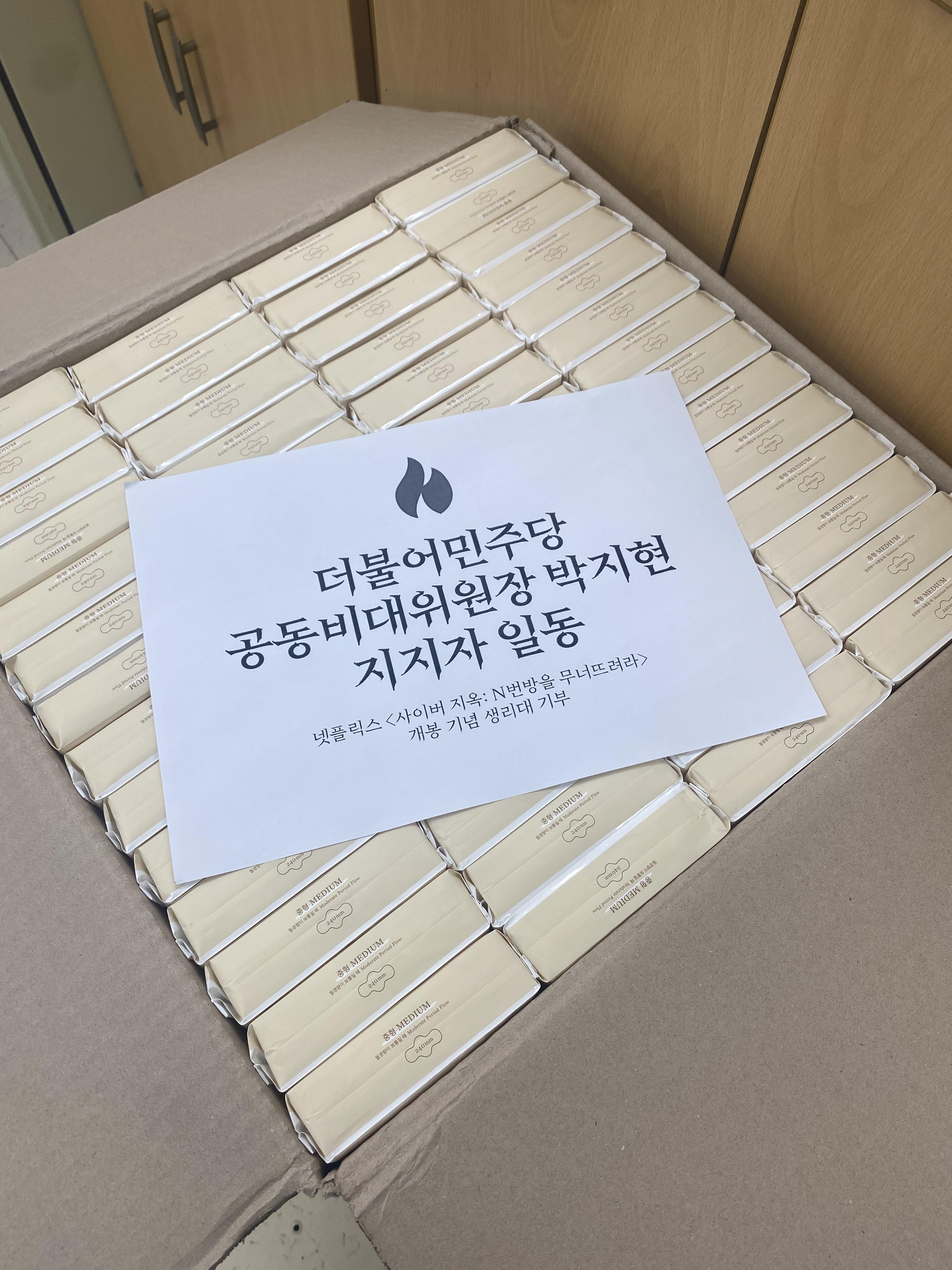 [강원사회복지신문 서은진 기자]=더불어민주당 박지현 공동비상대책위원장 지지자 일동은 지난 5월 18일 원주시청에 여성 위생용품 8박스(980팩)를 후원했다. 관계자는 "5월 18일 개봉하는 '사이버지옥: N번방을 무너뜨려라'를 기념해 후원하게 됐다."라며, "N번방을 탐사 보도한 '추적단 불꽃' 출신 박지현 비대위원장의 공...