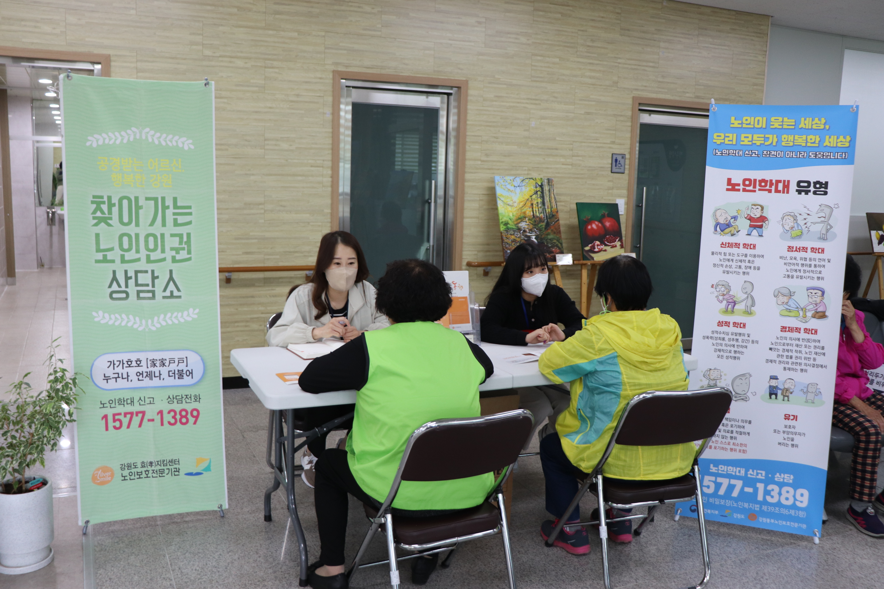 [강원사회복지신문 김종한 기자]='2022년 노인학대예방 찾아오는 이동상담' 실시 동해시 묵호노인종합복지관(관장 염규성)은 지난 5월 10일(화) 2022년 노인학대예방 상담 및 홍보캠페인을 실시하였다. 이날 행사는 강원동부노인보호전문기관과 연계하여 '찾아오는 이동상담'으로 실시되었으며, 노인보호전문기관의 역할과 업...